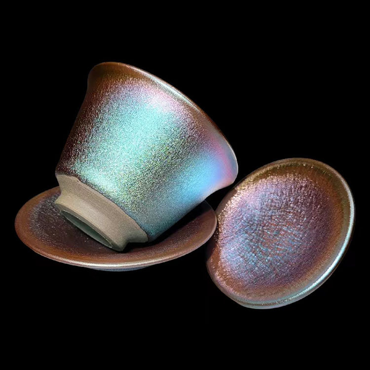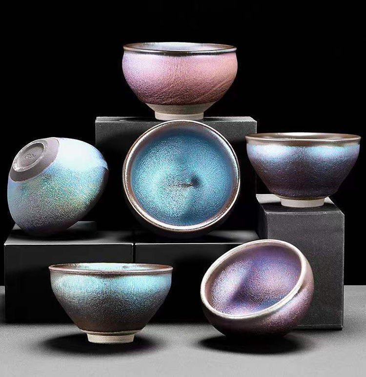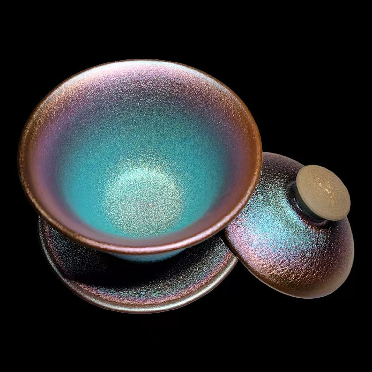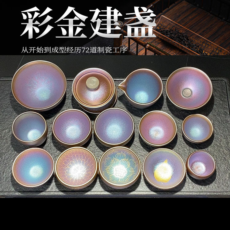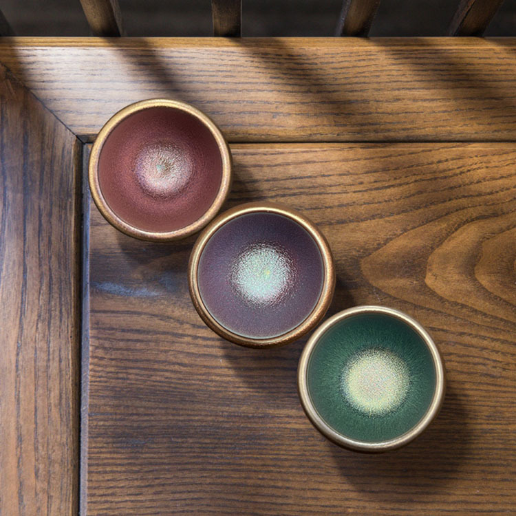 Красочная чашка для чая, чайная чашка Цзяньян, чашка мастера с железным ободком, маленькая чайная чашка, винтажная керамическая чашка, чаша с деревянной крышкой в виде листа лотоса и Будды