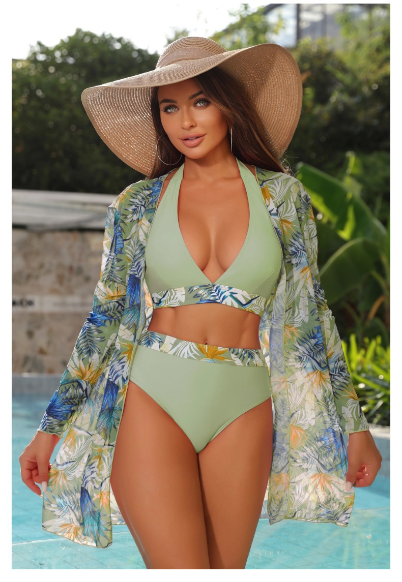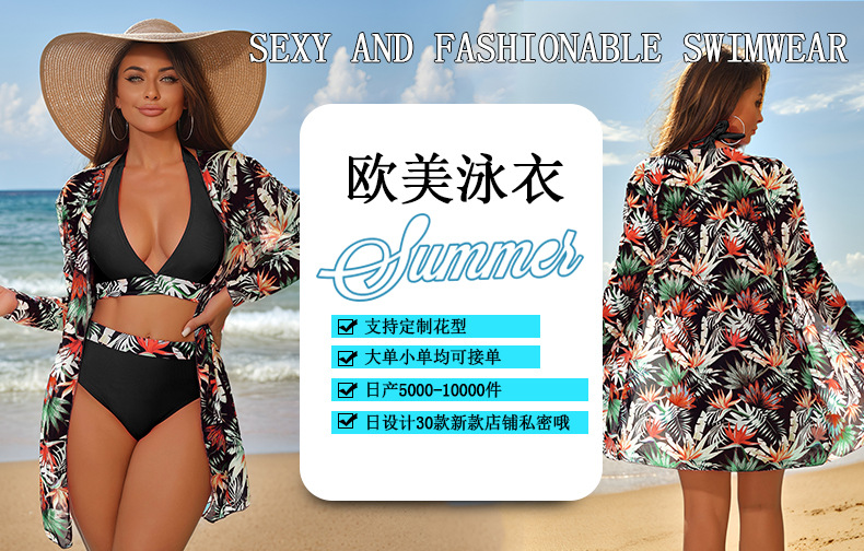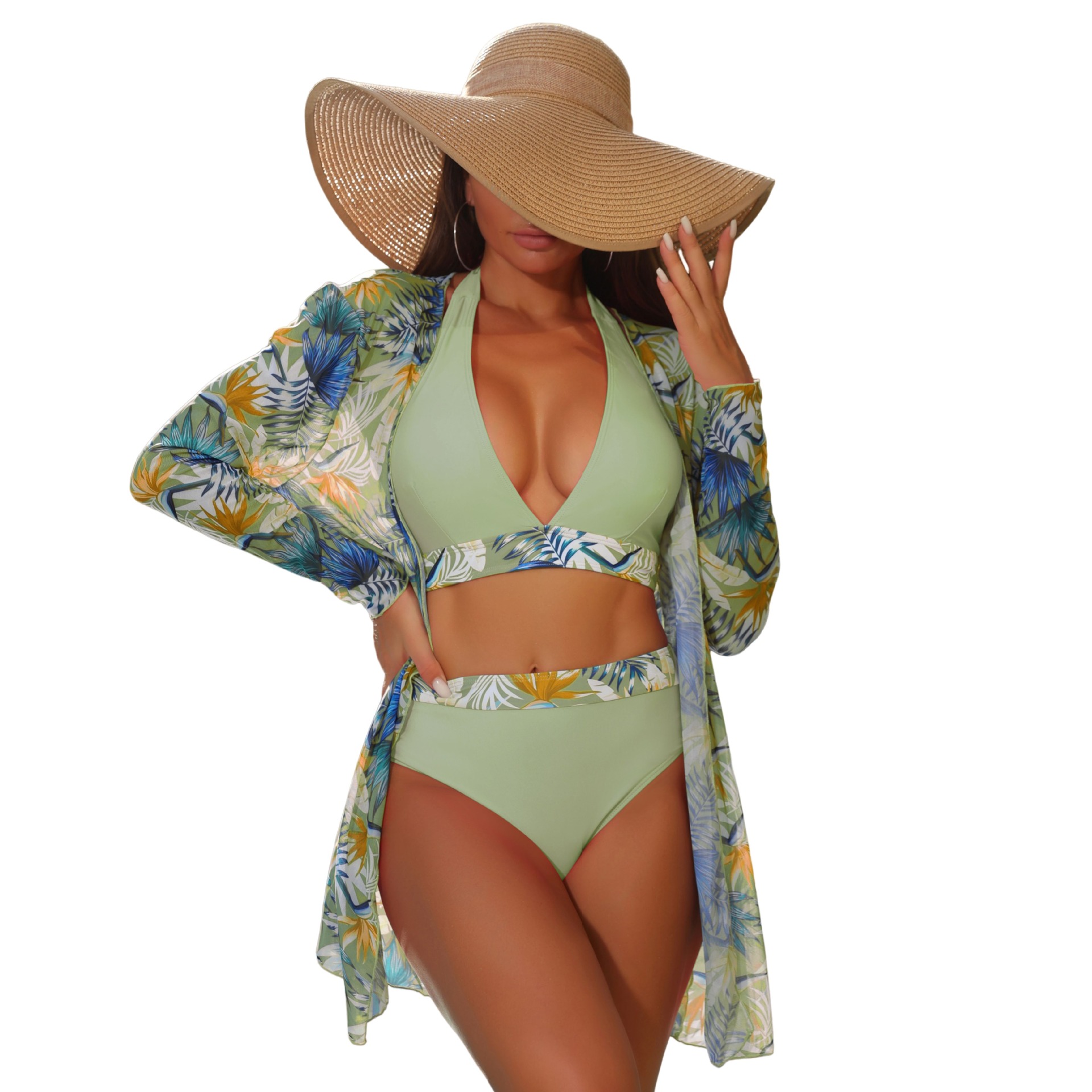 Европейская и американская внешняя торговля, новый трансграничный сетчатый разделенный купальник из трех частей для женщин, летний солнцезащитный купальник с прикрытием для женщин