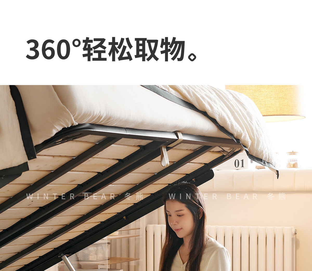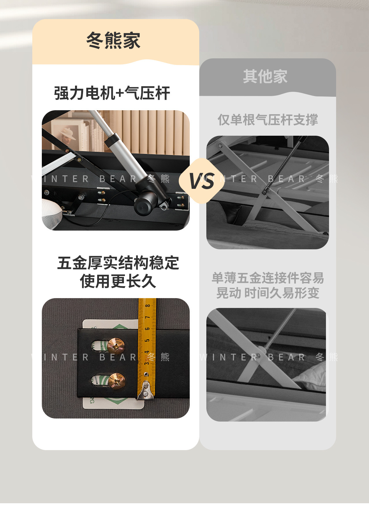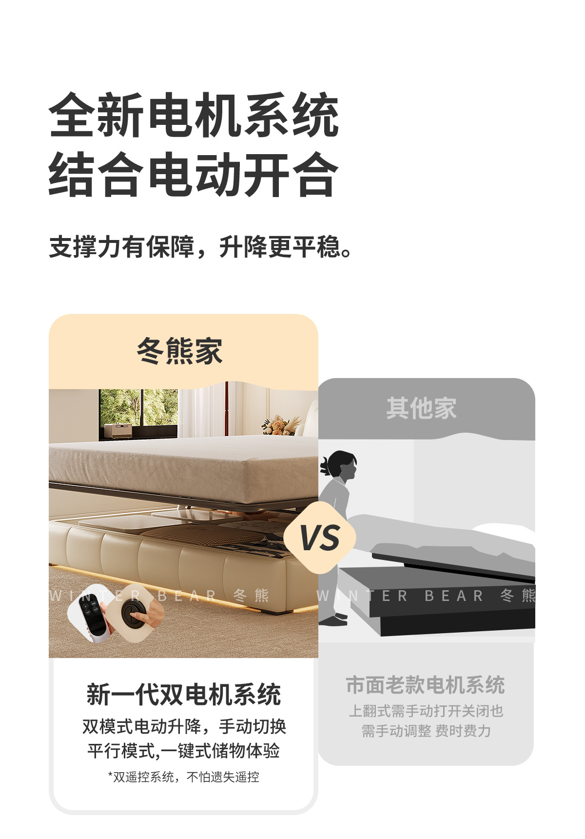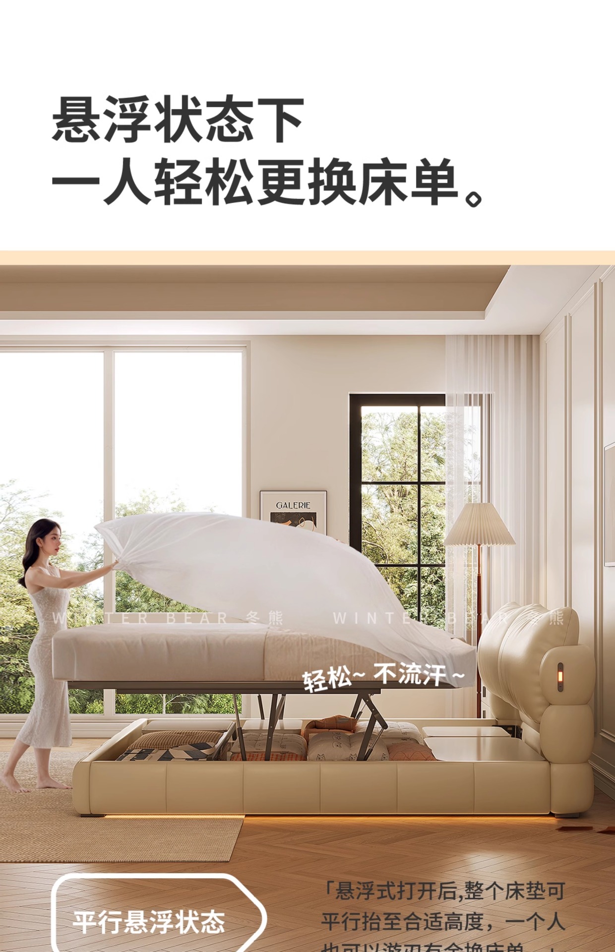 Двуспальная кровать с мягким изголовьем в стиле французского кремового цвета, с ящиками для хранения, электрическим механизмом подъема и обивкой из искусственной кожи «Зимний медведь».