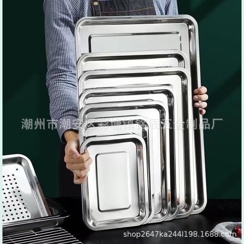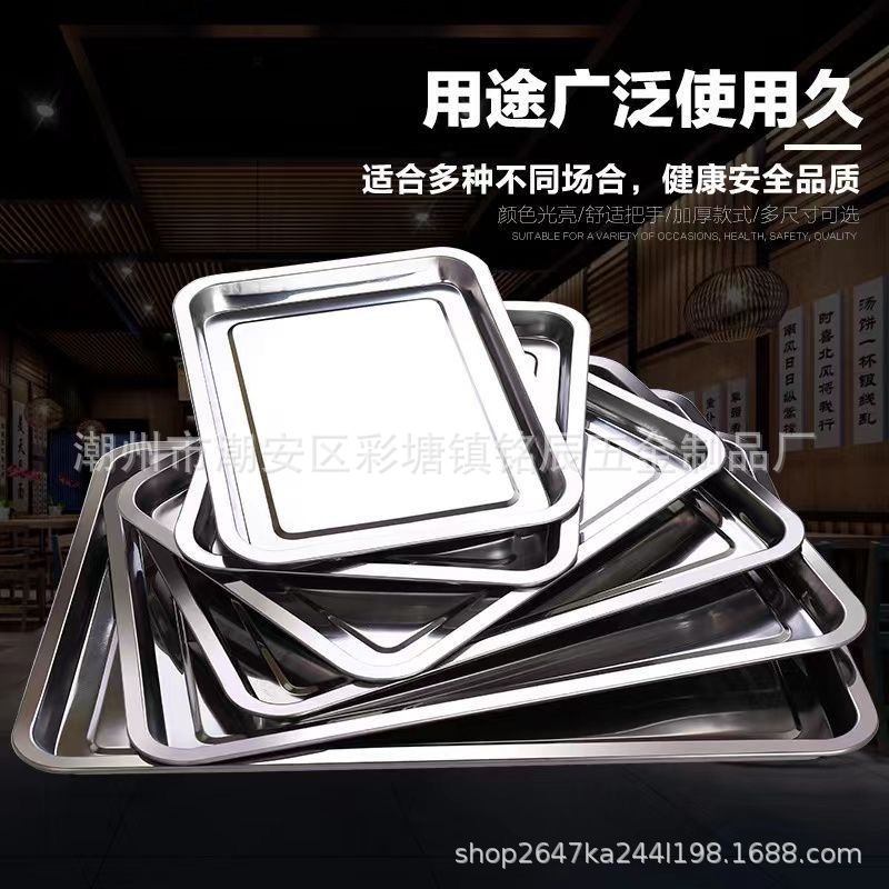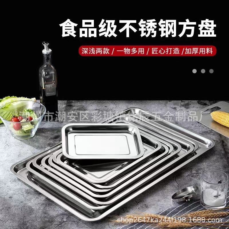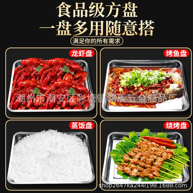 Квадратные тарелки из нержавеющей стали прямоугольные и очень толстые поддоны для ресторана, приготовленные на пару, коммерческая тарелка для домашней кухни тарелка для пельменей