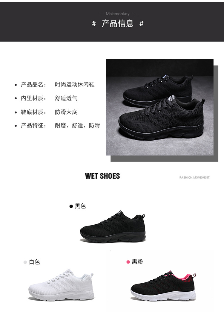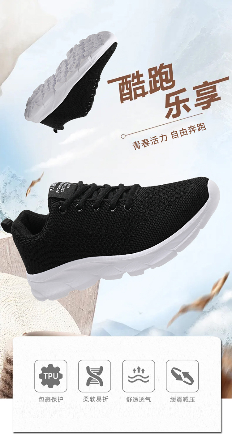 产地:福建晋江,冷粘工艺,飞织面+EVA底,质量三包,