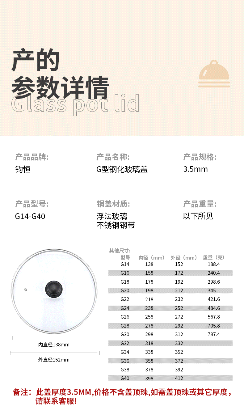 Крышка из закаленного стекла, прозрачная утолщенная бытовая пароварка, кастрюля для супа, электрическая кастрюля, крышка для кастрюли, кастрюля G типа 3,5 мм