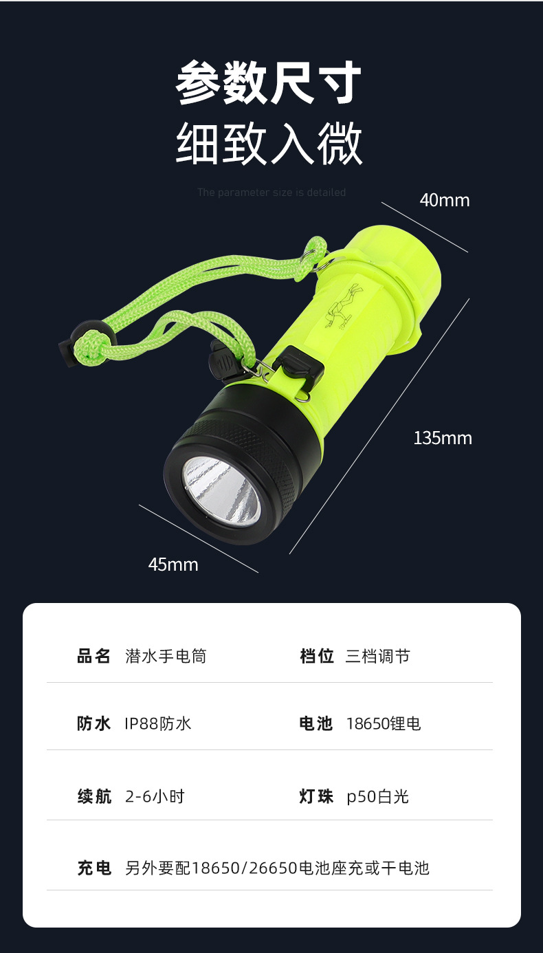 Дайвинг фонарик магнитный открытый p50 белый свет сильный свет фонарик амфибия зарядка подводного плавания фонарик