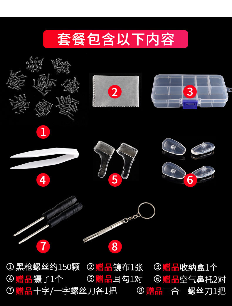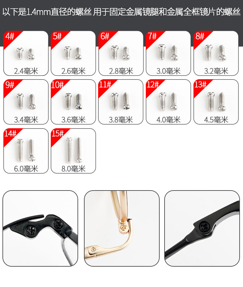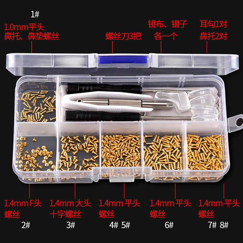 [Минимальный заказ 30 комплектов] Маленькие винты для ремонта очков, винты для ножек оправы, силиконовые накладки на нос, аксессуары для отверток.