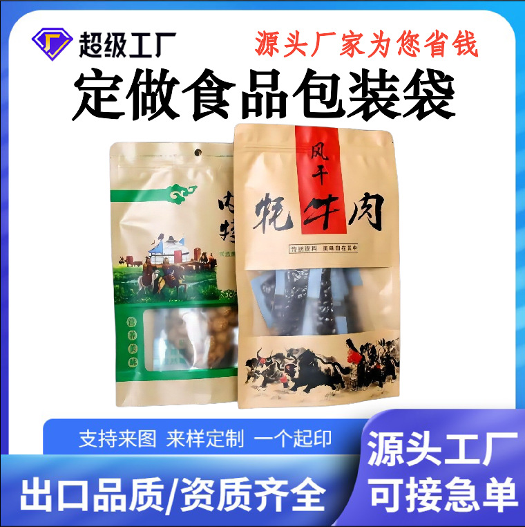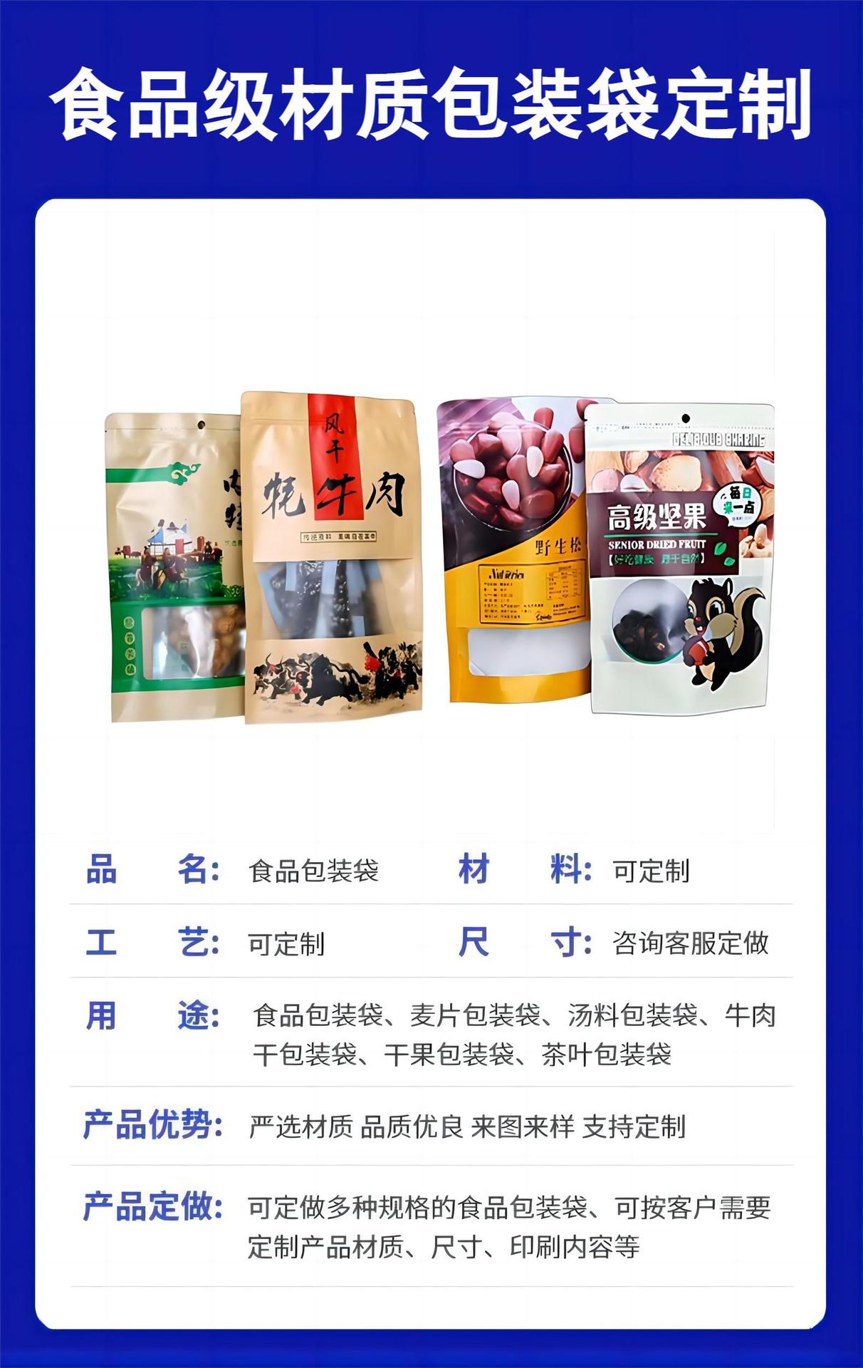 коричневая упаковочная бумага, самостоятельная сумка с застежкой-молнией, вакуумная сумка для упаковки пищевых продуктов, композитная пластиковая рулонная пленка, алюминиевая фольга, трехсторонняя герметизация, костяная сумка, индивидуальный заказ