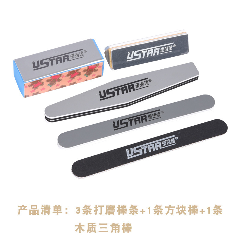 3-сторонний шлифовальный стержень; 7-сторонний шлифовальный стержень; 4 стороны полировального блока (толстая и тонкая сетка) 1 шт.; Полировальная полоска (грубая сетка) 1 шт.; 1 восковая полоска (полированная и мелкая сетка); Набор полировальных полосок; Набор для полировки Yousuda 91605; Набор полировальных стержней Yousuda 91604; Набор файлов Yousuda 90691