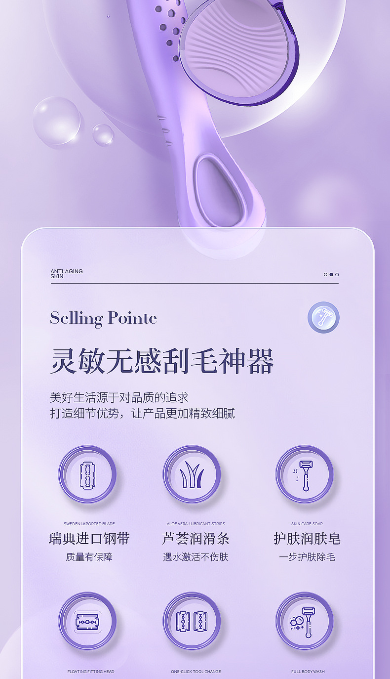 Оболочка розовая бритья; Оболочка фиолетовый скребок; Лунная ручка длинный розовый скребок; Лунная ручка длинный фиолетовый скребок; Новый розовый сменный нож; Новый фиолетовый сменный нож