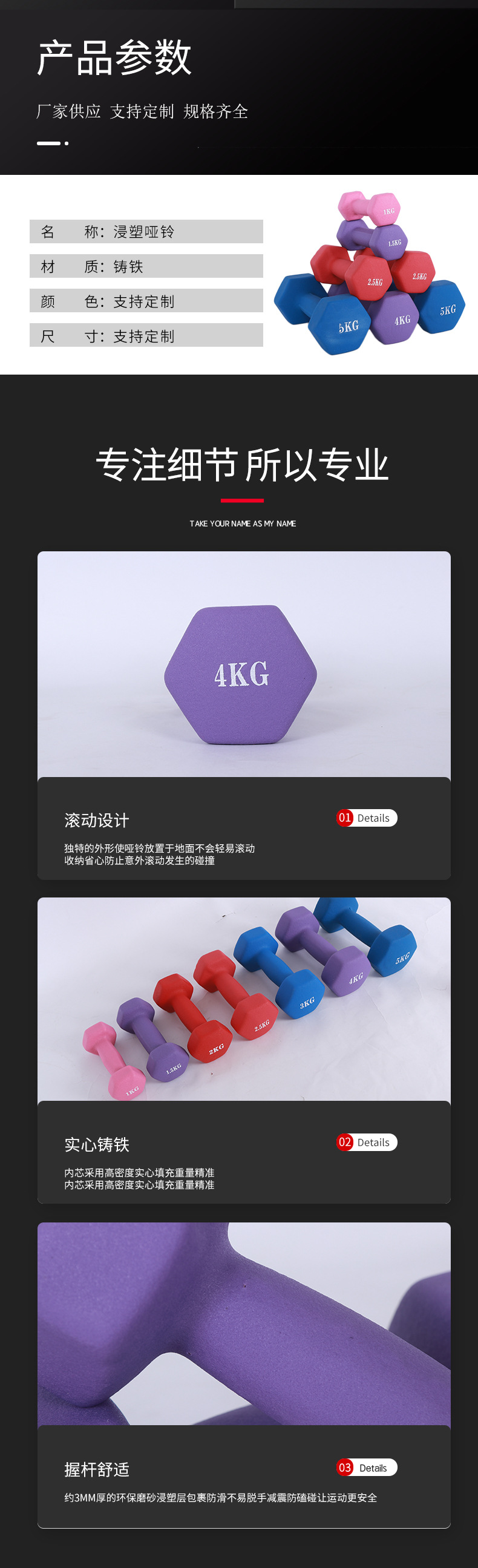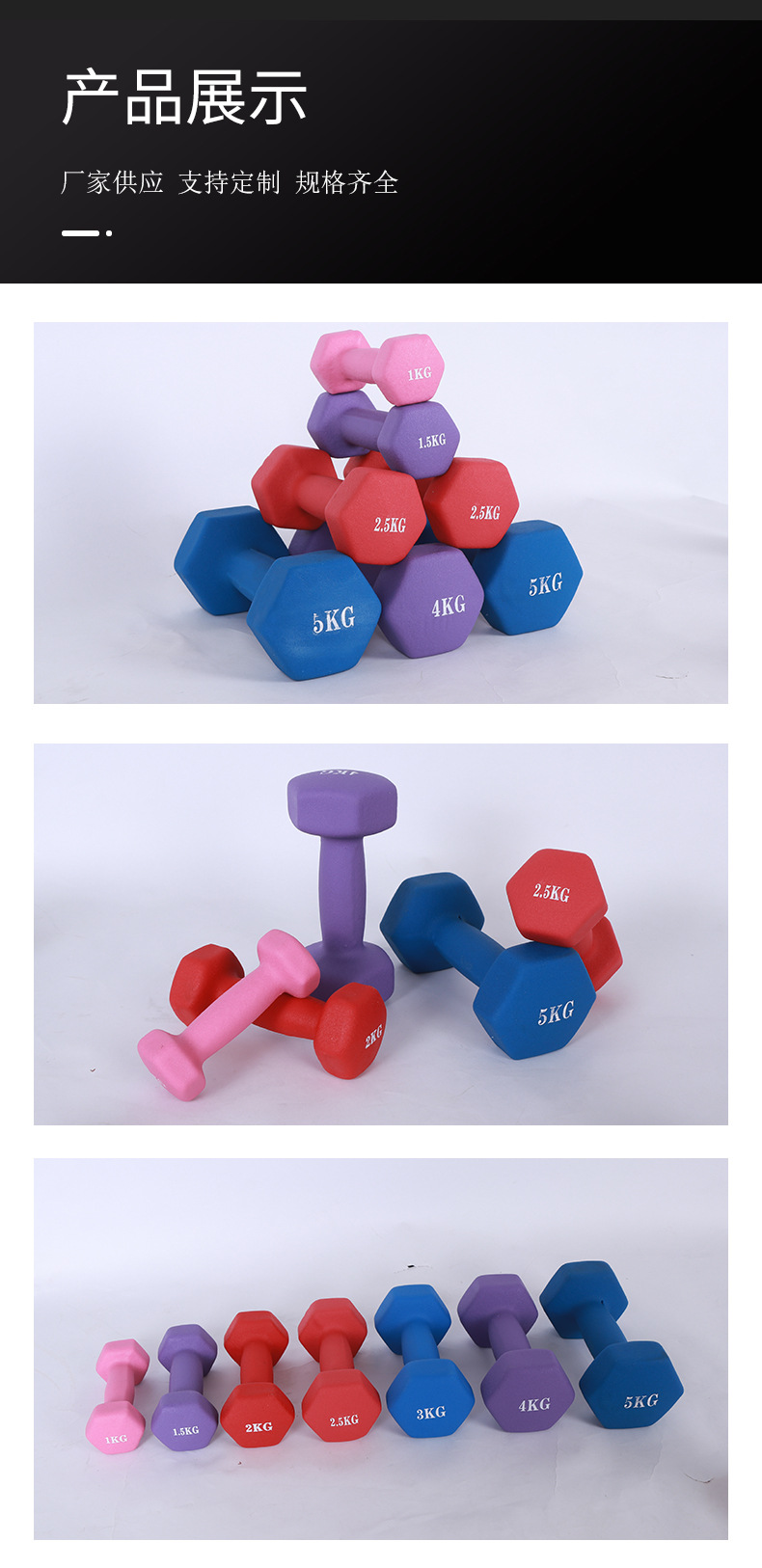 Набор гантелей с пластиковым покрытием и матовой поверхностью для начинающих мужчин и женщин, тренировочное оборудование, шестигранные гантели с малым весом.