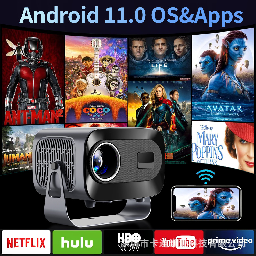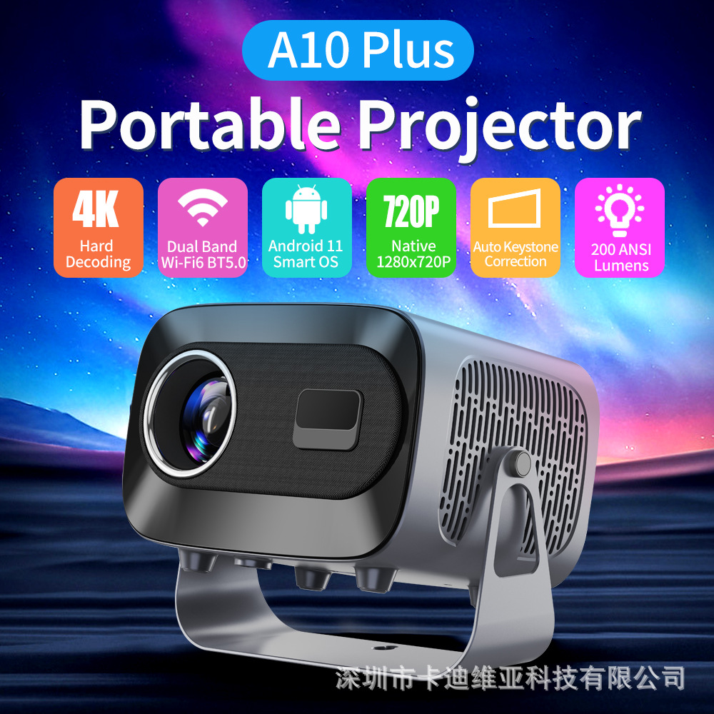 Трансграничный новый электрический фокус A10 4K HD WiFi Android смарт-театр портативный мини-проектор с поворотом и наклоном
