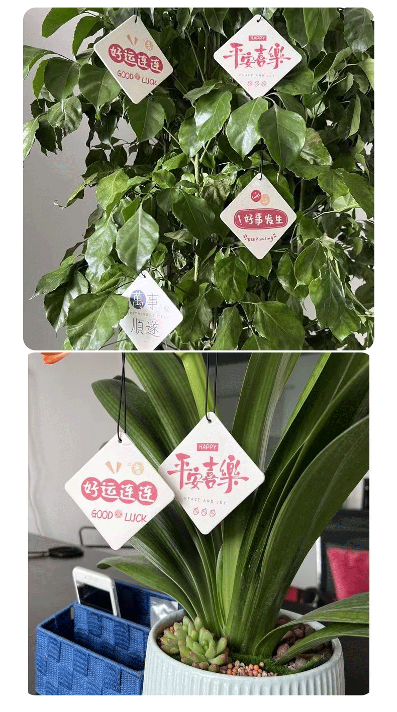 Мир и радость-океан; Удачи, Гулун; Хорошие вещи случаются-COCO; Всего наилучшего-любовь к аромату MS; Станьте богатым как можно скорее – Бербери