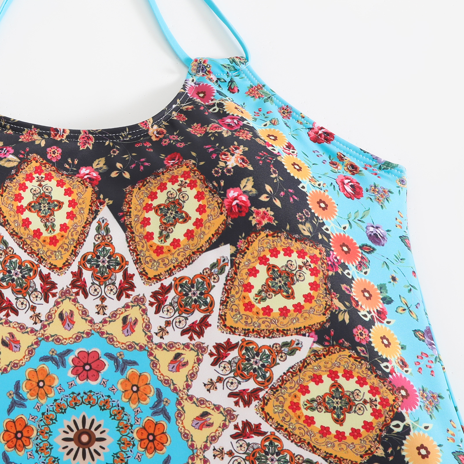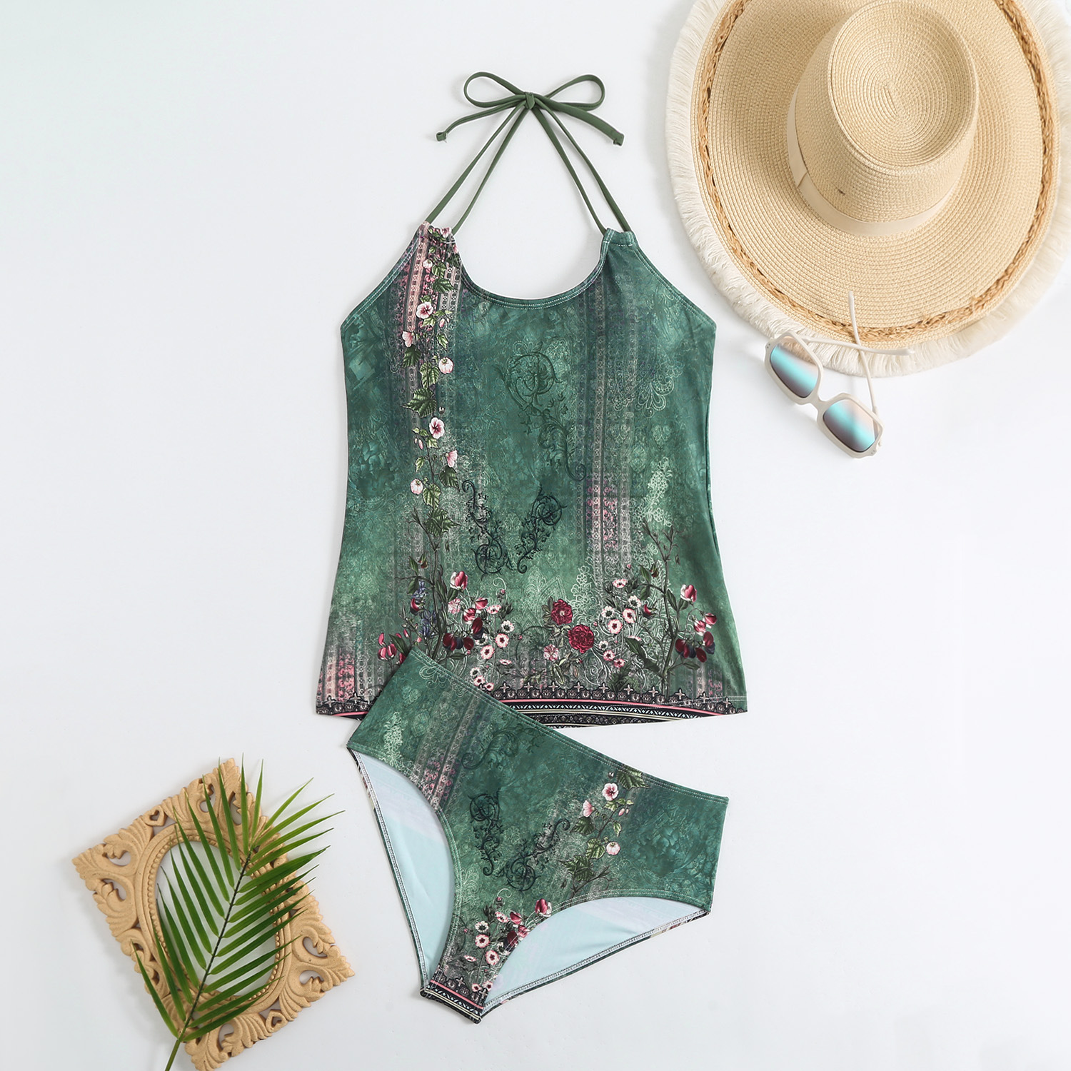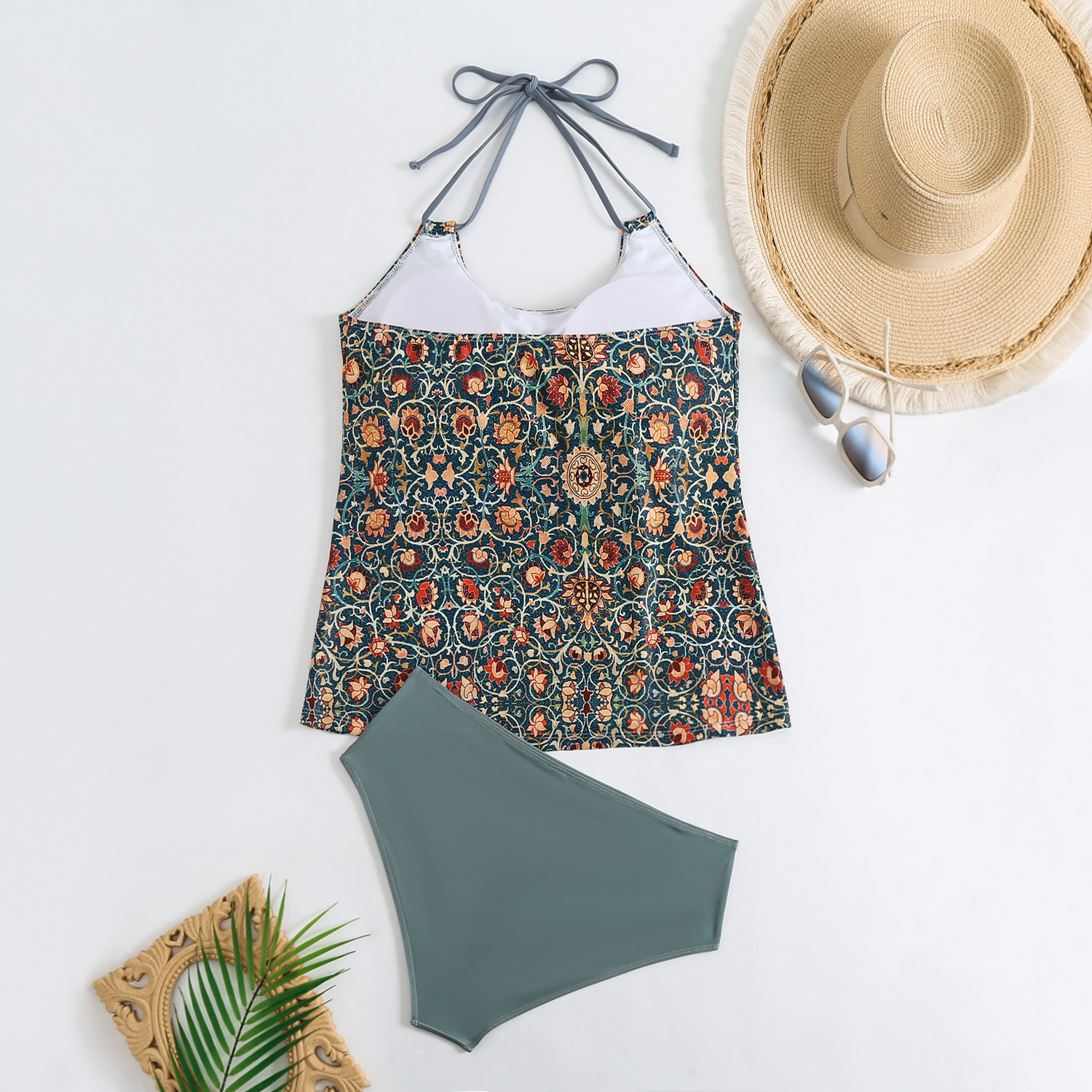 Новый винтажный принт с высокой талией консервативный Amazon лето бикини пляжный принт купальник