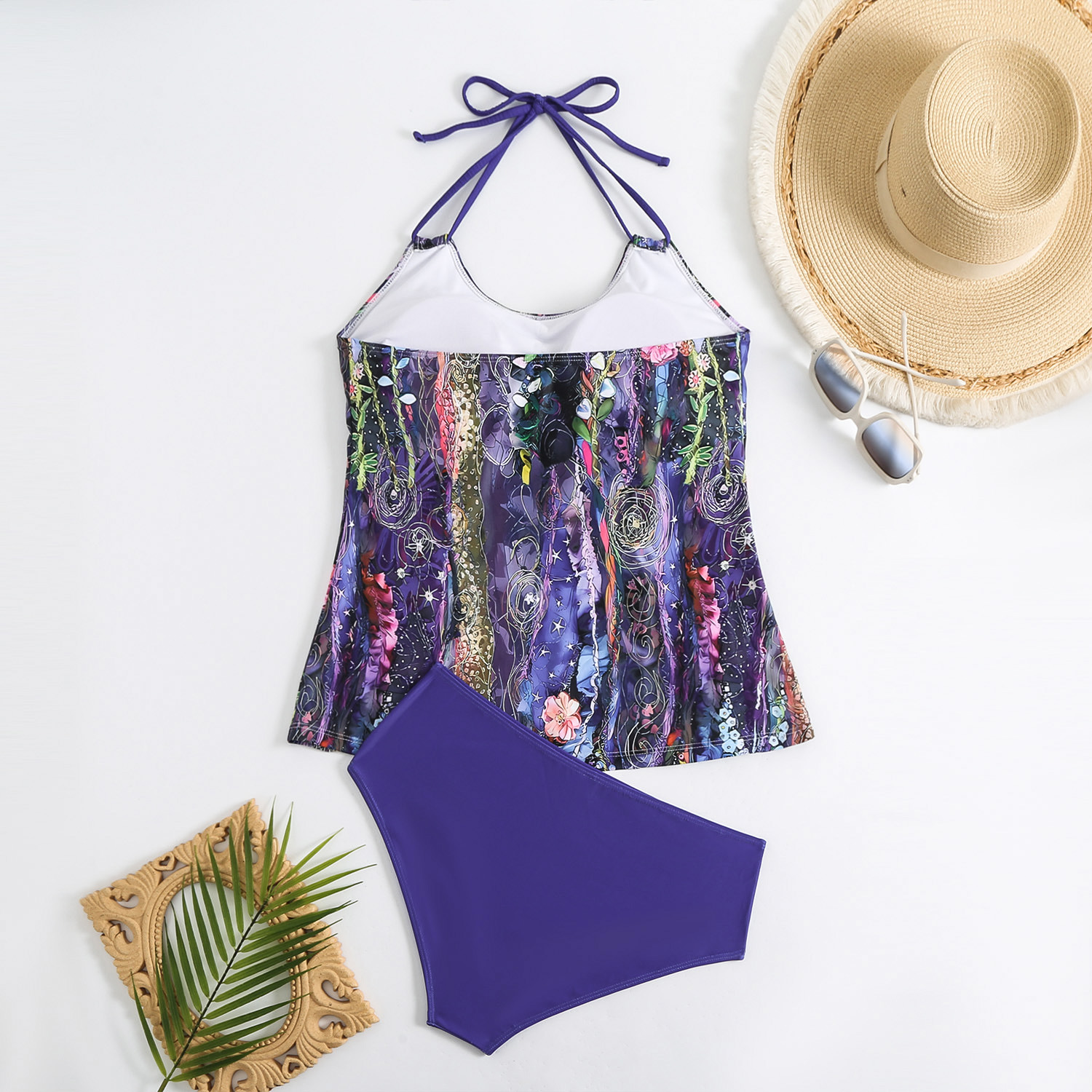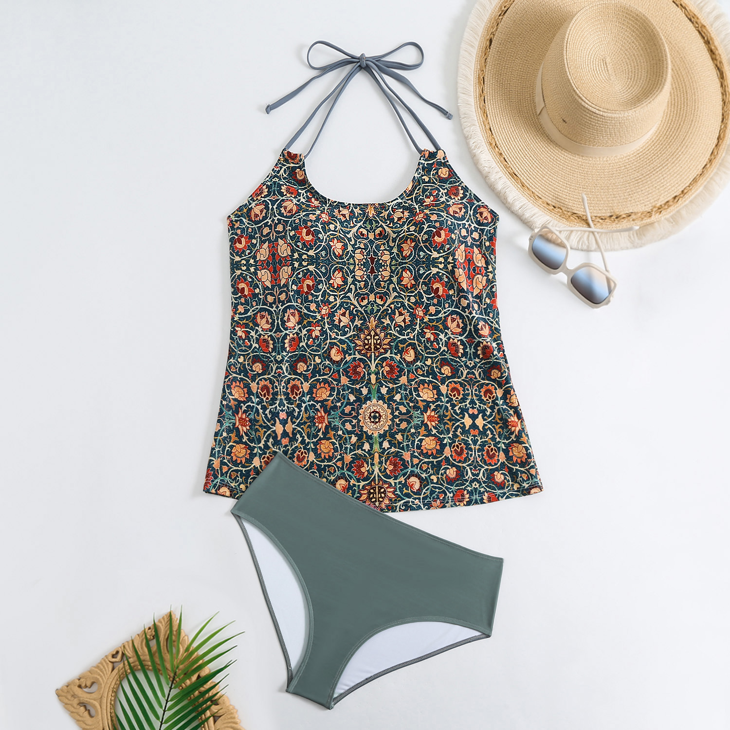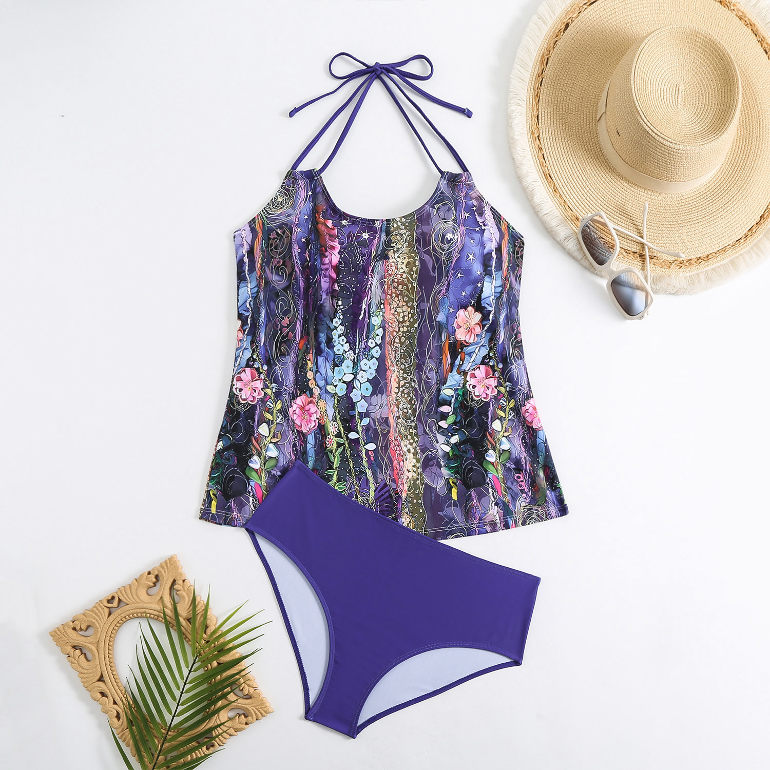 Новый винтажный принт с высокой талией консервативный Amazon лето бикини пляжный принт купальник