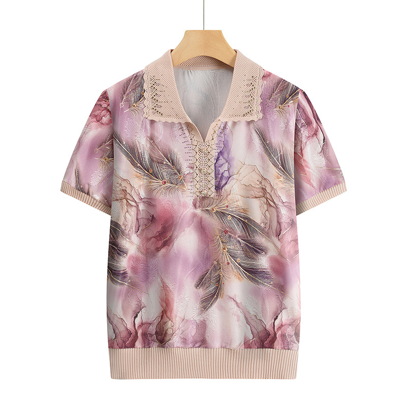 Мама одеваются летние топы с короткими рукавами и лацканами