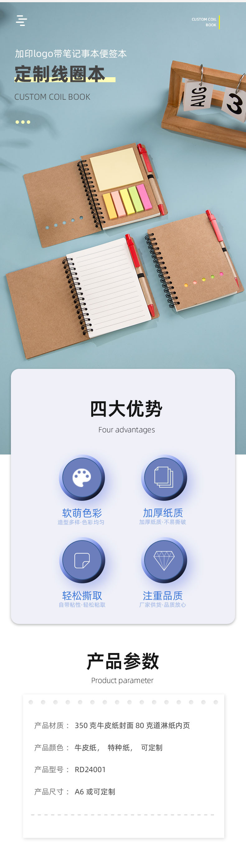 Оптовые блокноты с креплением, стикеры из крафт-бумаги, маленькие блокноты с возможностью нанесения логотипа
