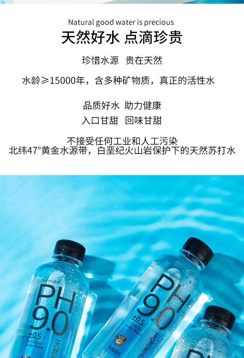 Натуральная сода PH9.0, слабощелочная, без газирования, 400 мл * 12/24 бутылки, целая коробка, оригинальный вкус, без добавок, натуральная вода.