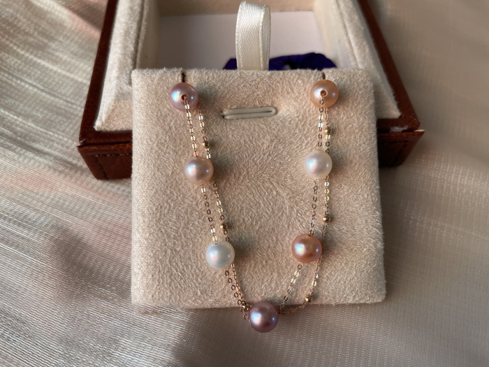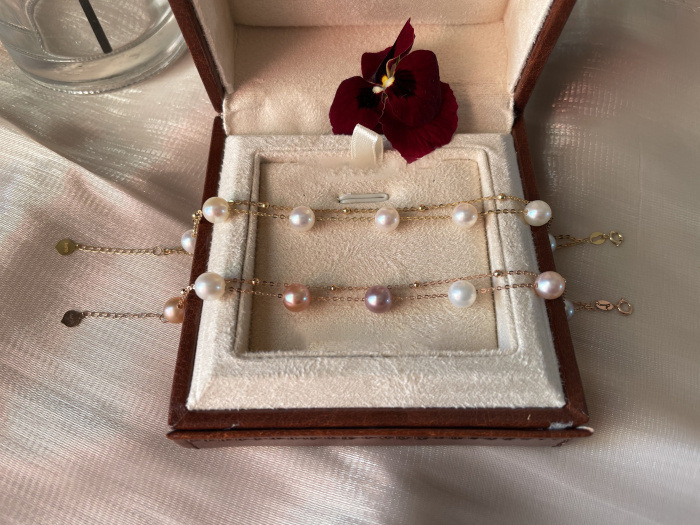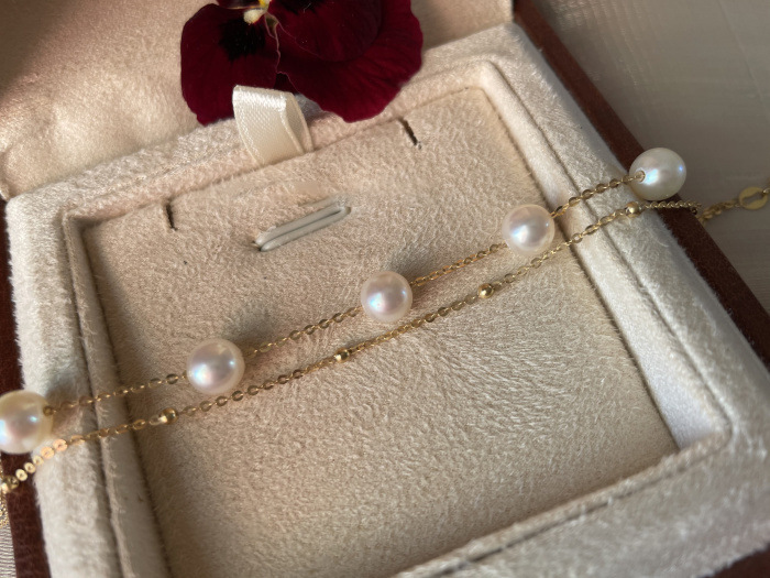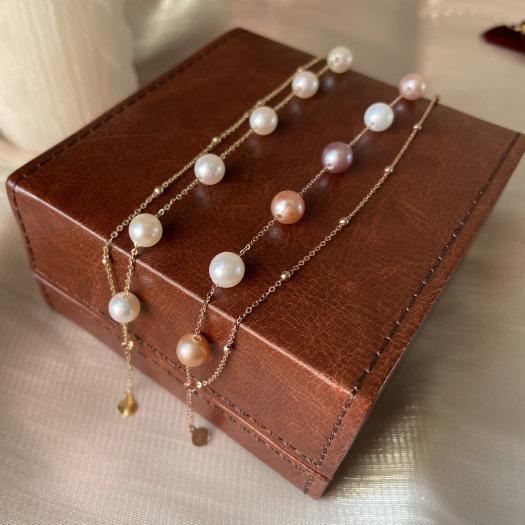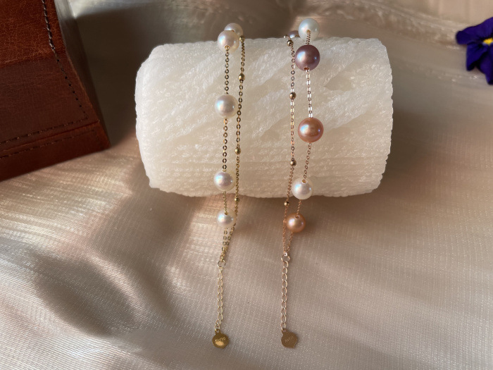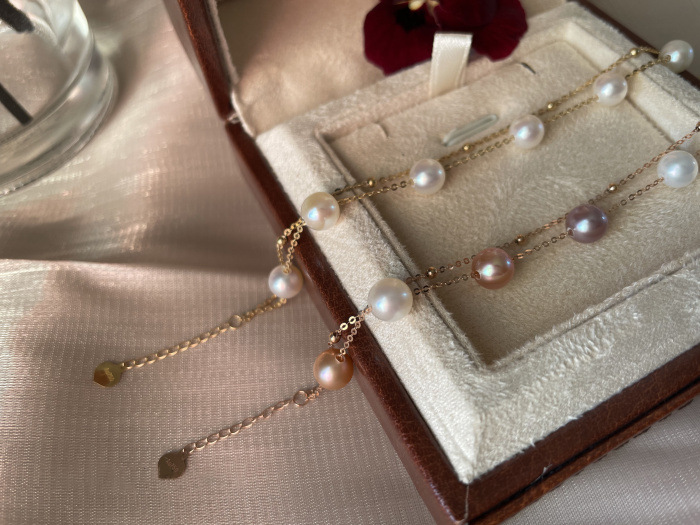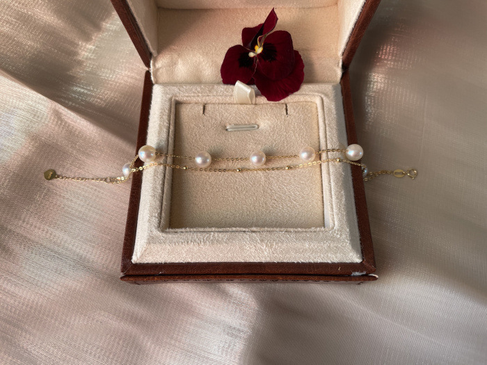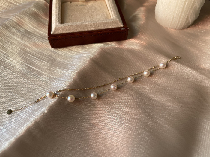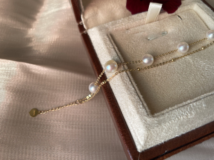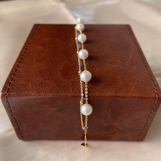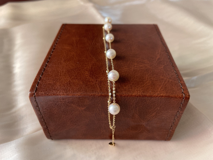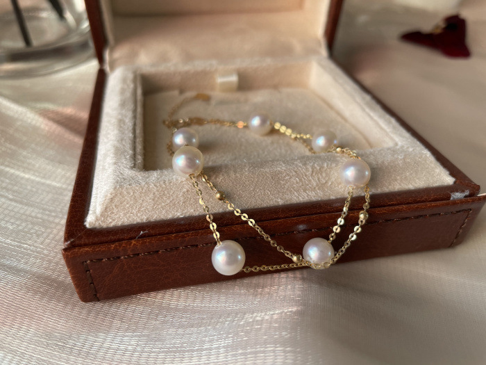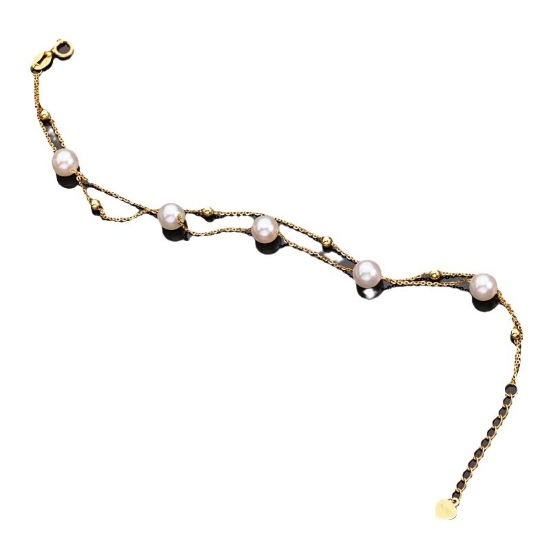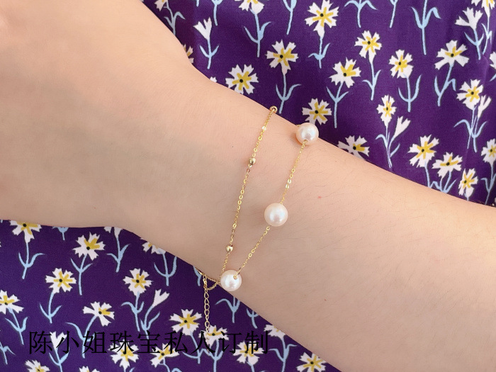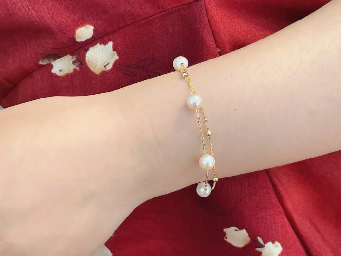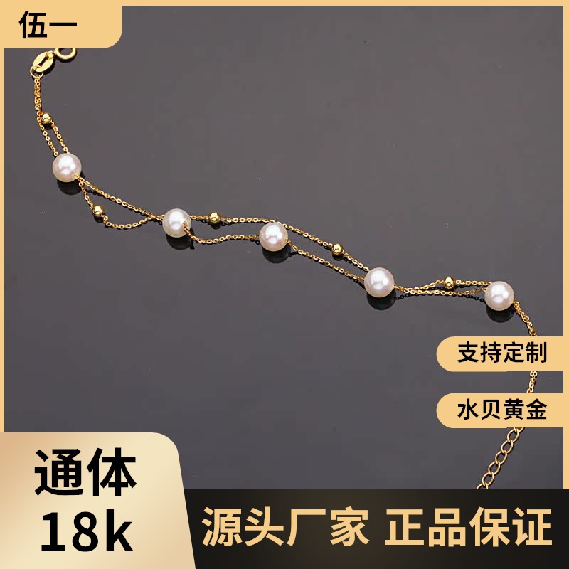 Браслет из 18-каратного золота с натуральным пресноводным жемчугом и дыханием ребенка au750, двухслойный золотой браслет с бусинами, цепочка в форме буквы О, женская водная ракушка