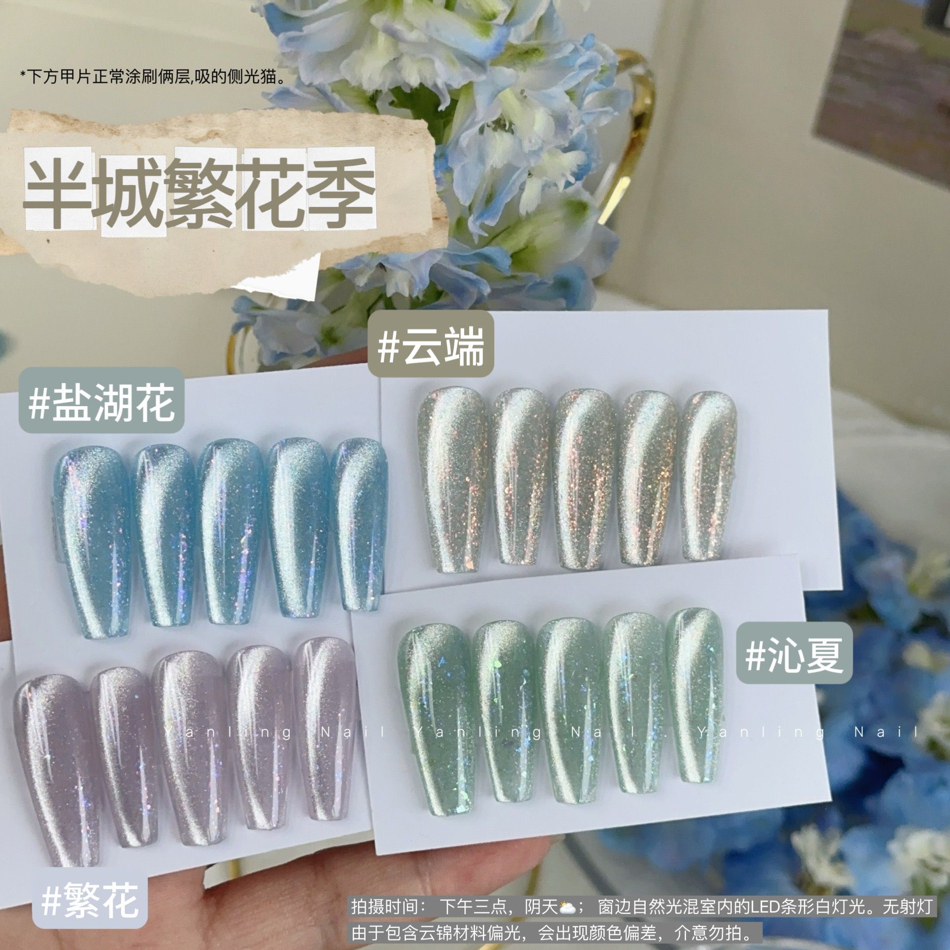 Ткань Yanling Half-City: цветочный узор, эффект кошачьего глаза, бархат, пайетки, переливающийся эффект «аврора», текучий песок, цвет «зеленый чай», материал «кошачий глаз»