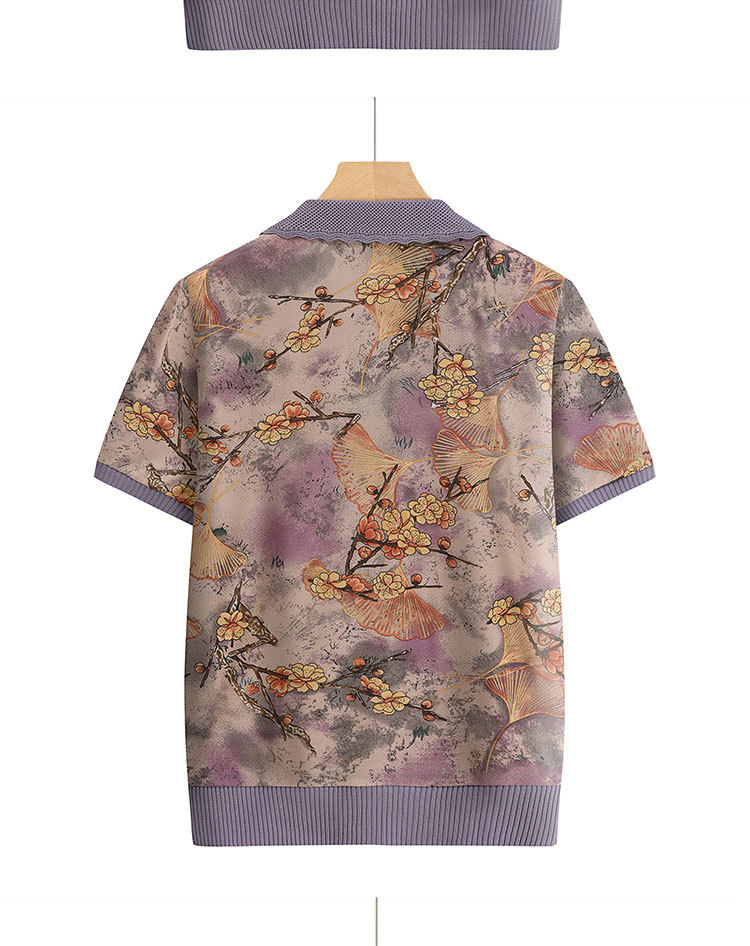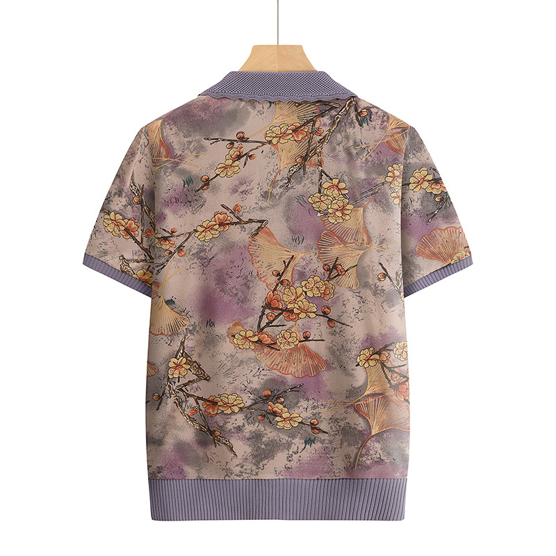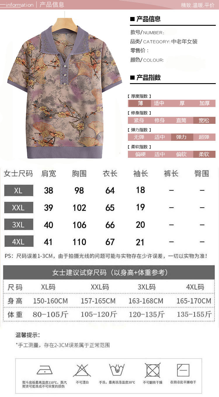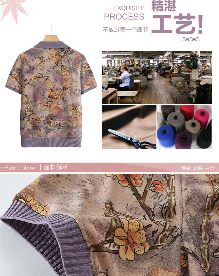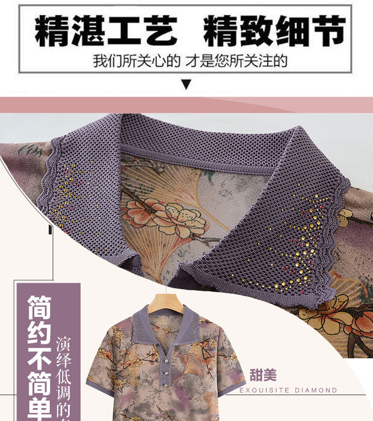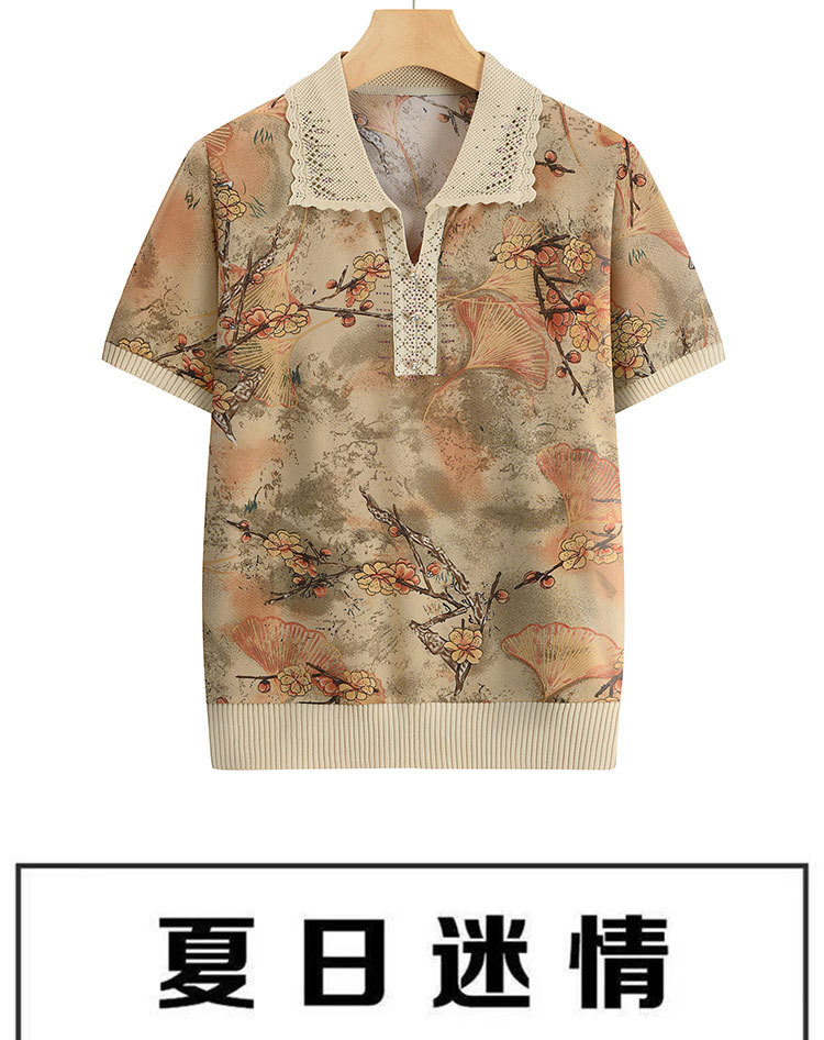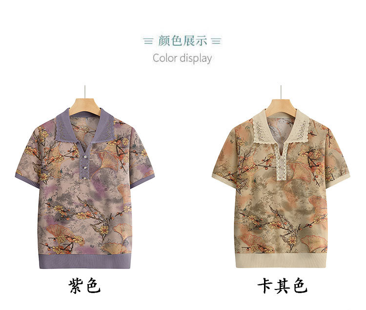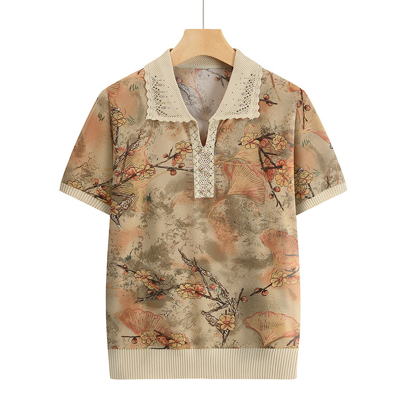 Лацканная мама лето с короткими рукавами принт для женщин среднего и пожилого возраста удобная одежда свободная повседневная удобная бабушка топ