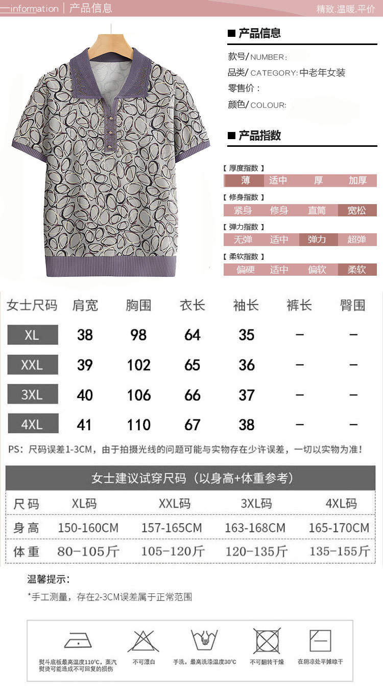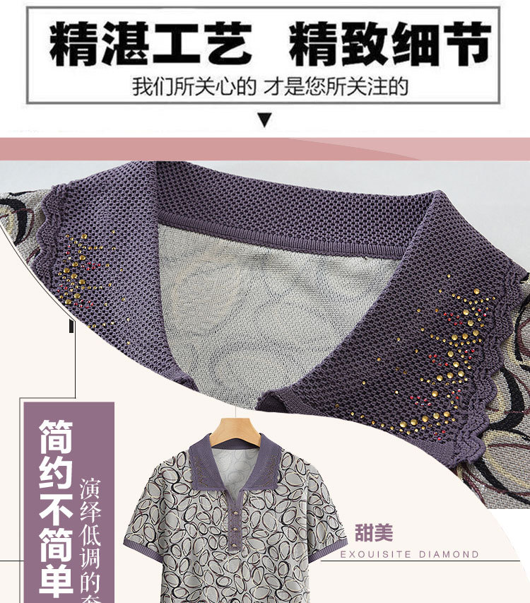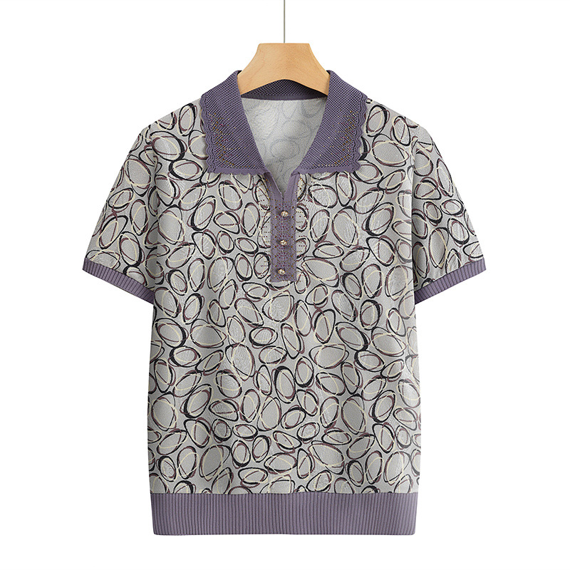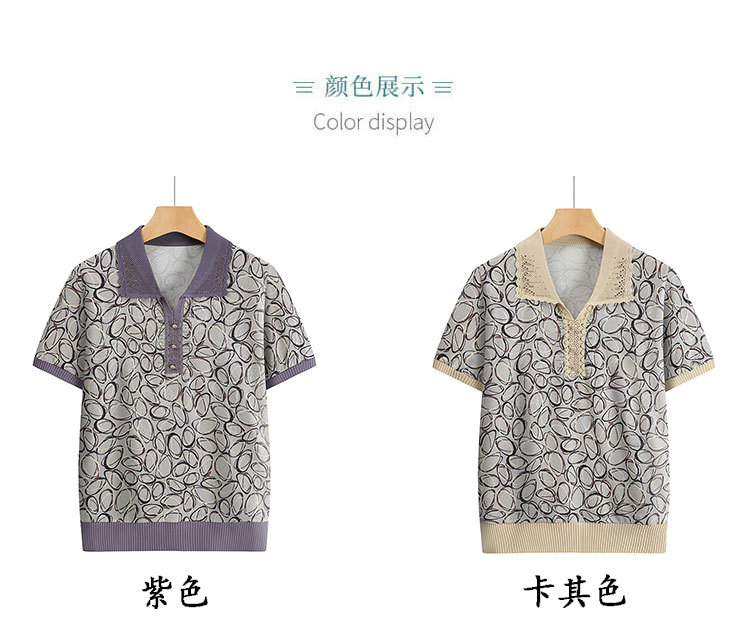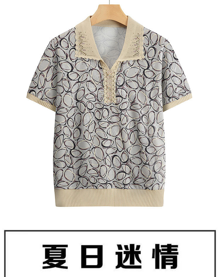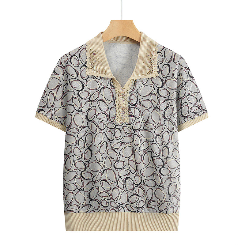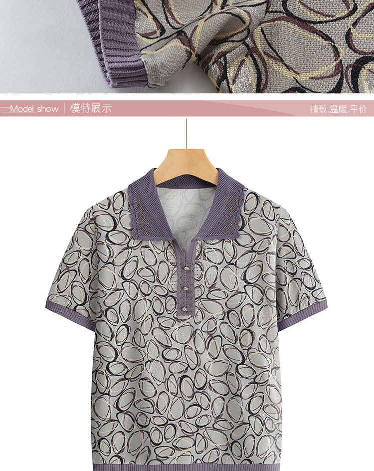 Новая мама с отворотом и принтом трикотажная рубашка с короткими рукавами летняя средняя и пожилая женщина 50 лет свободный повседневный удобный топ