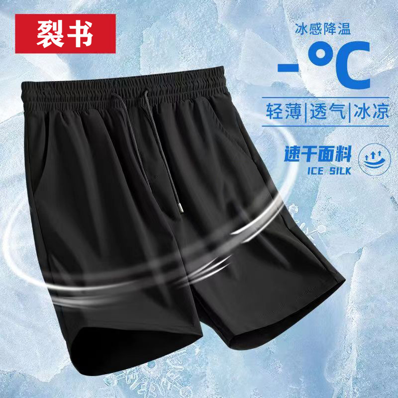Шорты из ледяного шелка с трещинами 2024 Летние новые пять-пять-пять-пять-пули технологии 3 цвета для мужчин и женщин