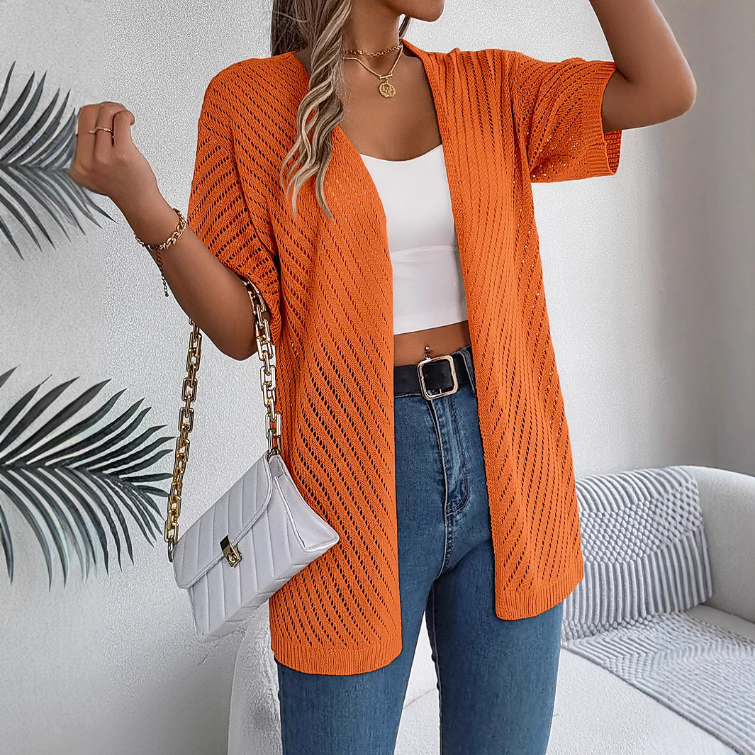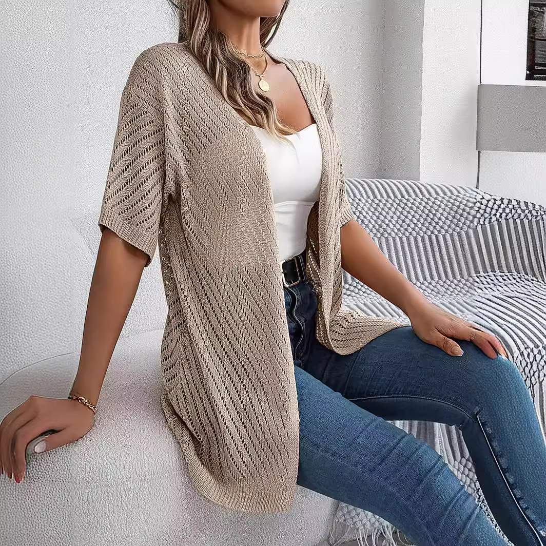 Реально сфотографированный летний новый летний европейский и американский полый свитер с короткими рукавами кардиган для отдыха солнцезащитный свитер независимая станция трансграничной женской одежды