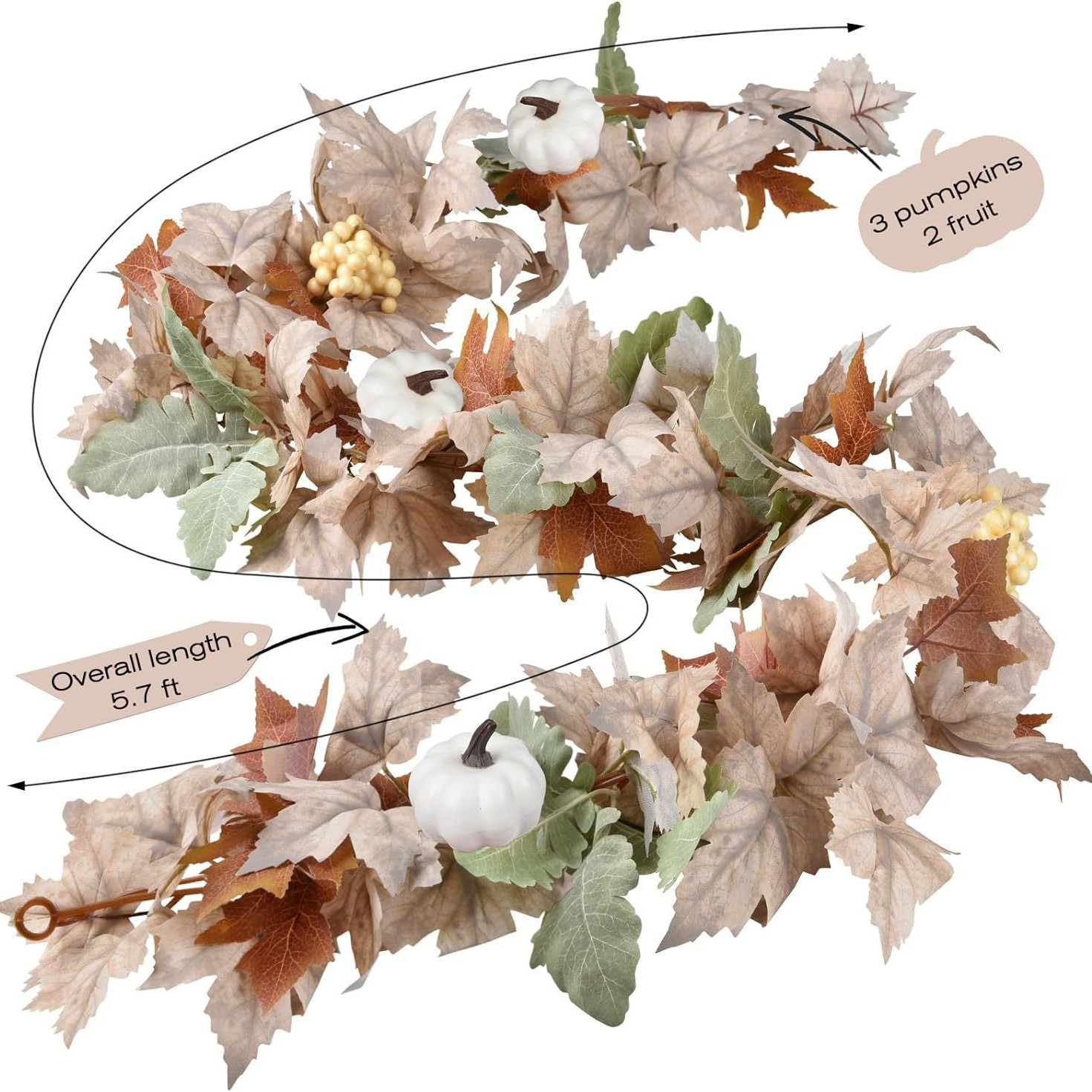 Фестиваль урожая Сельский дом украшения Farmhouse День благодарения кленовые листья белые тыквы набор гирлянды подвеска