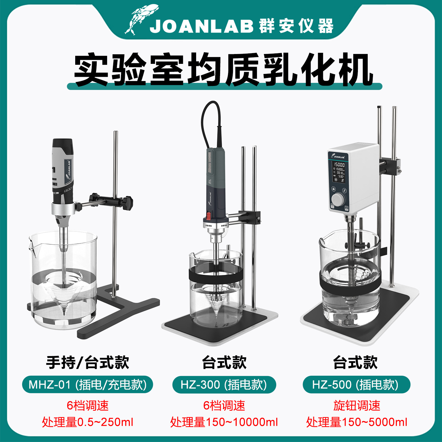 MHZ-01 (портативная/подключаемая модель); MHZ-02 (портативная/перезаряжаемая модель); HZ-500 (большая емкость/с основанием); HZ-300 (большая емкость/с подставкой); Режущая головка MHZ-01 Φ6 мм (0,5–50 мл); Режущая головка MHZ-01 Φ8 мм (1–100 мл); Режущая головка MHZ-02 Φ6 мм (0,5–50 мл); Режущая головка MHZ-02 Φ8 мм (1–100 мл); Режущая головка HZ-500 Φ18 мм (2 л); Режущая головка HZ-500 Φ22 мм (3 л); Режущая головка HZ-500 Φ25 мм (5 л); Режущая головка HZ-300 Φ18 мм (150-3000 мл); Режущая головка HZ-300 Φ36 мм (0,5–10 л); База (адаптирована к МГц-01/МГц-02)