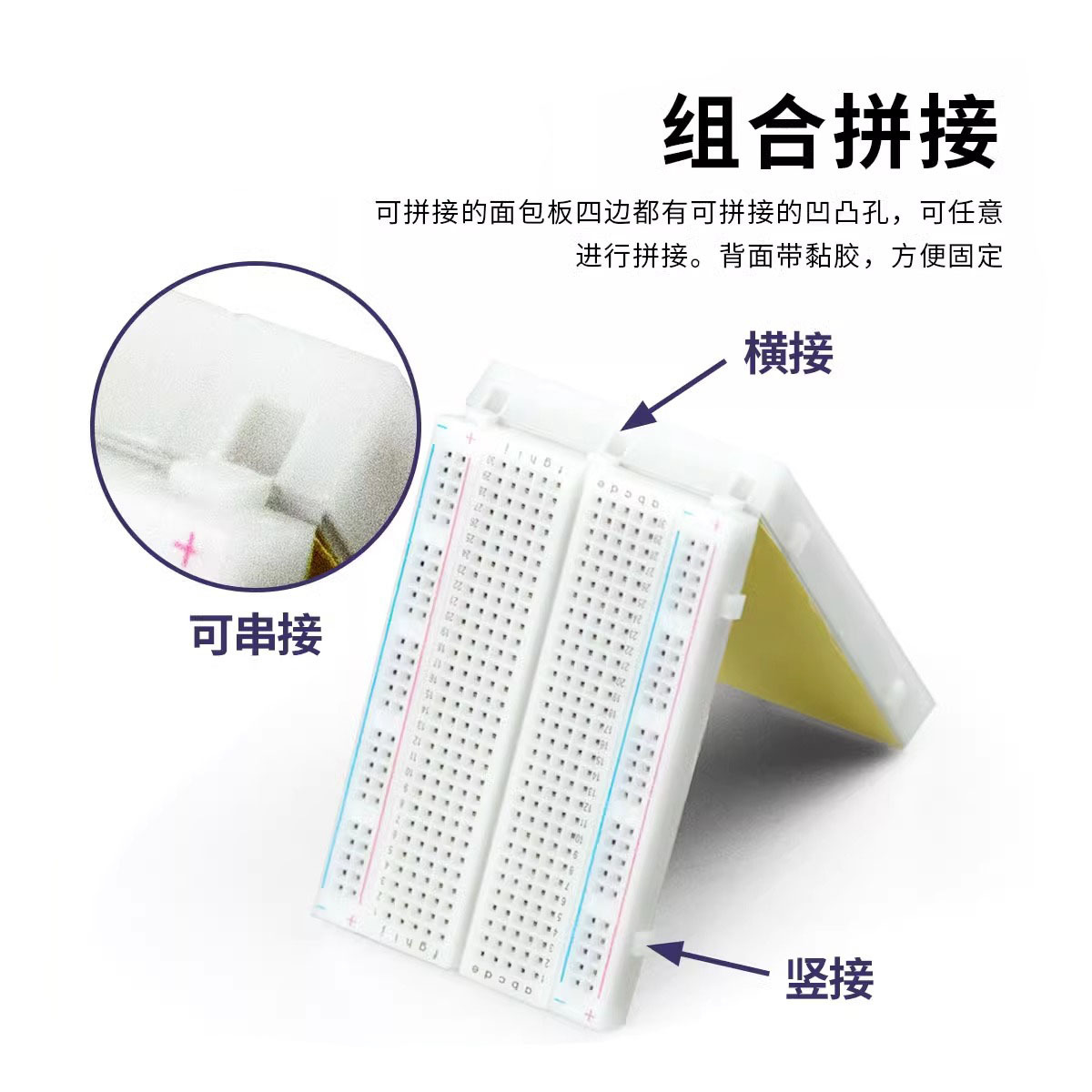 Макетная плата можно соединить с универсальной печатной платой, макетной платой с 400 отверстиями, модулем питания MB-102, цифровым экспериментом «сделай сам»