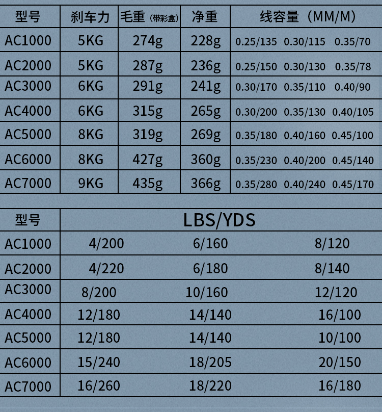 AC 2OOO рыболовные колеса; AC 3OOO рыболовные колеса; AC 4OOO рыболовное судно; AC 5OOO рыболовное колесо; AC 6OOO рыболовное судно; AC 7OOO рыболовное судно