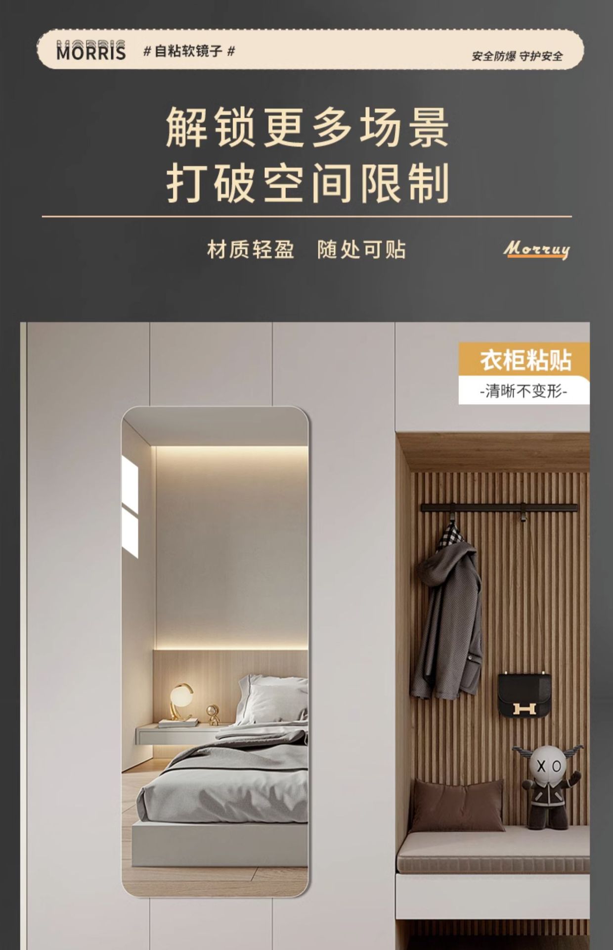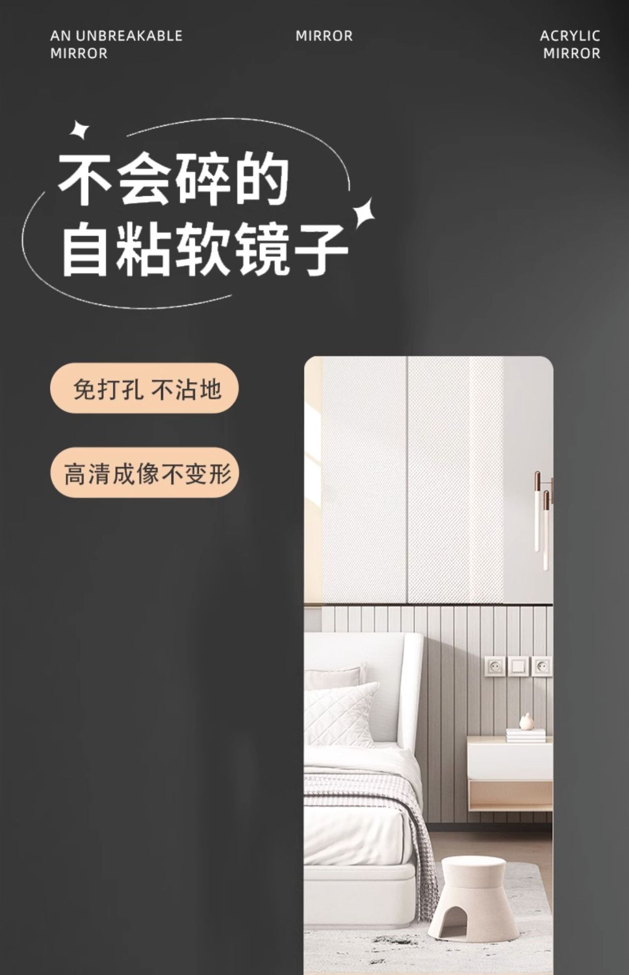 Мягкое настенное зеркало, самоклеящееся акриловое зеркало в полный рост, настенное зеркало высокой четкости, наклейка-зеркало, зеркало для примерки, зеркало для гардероба