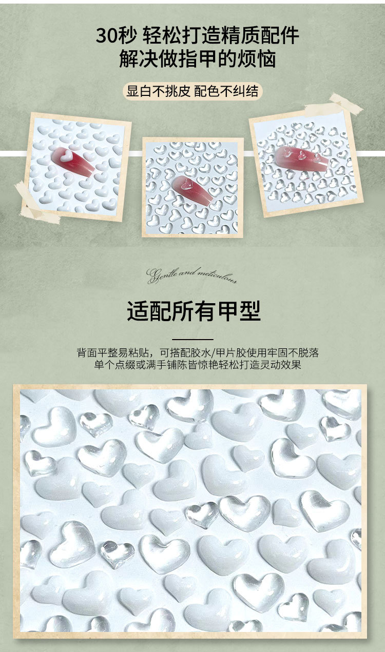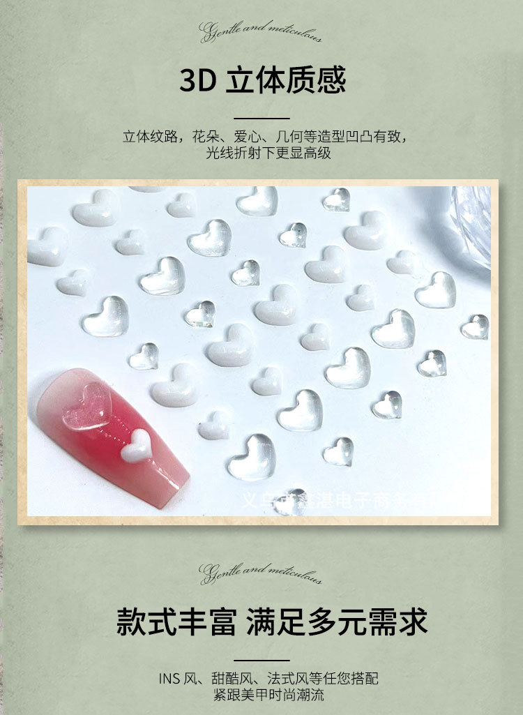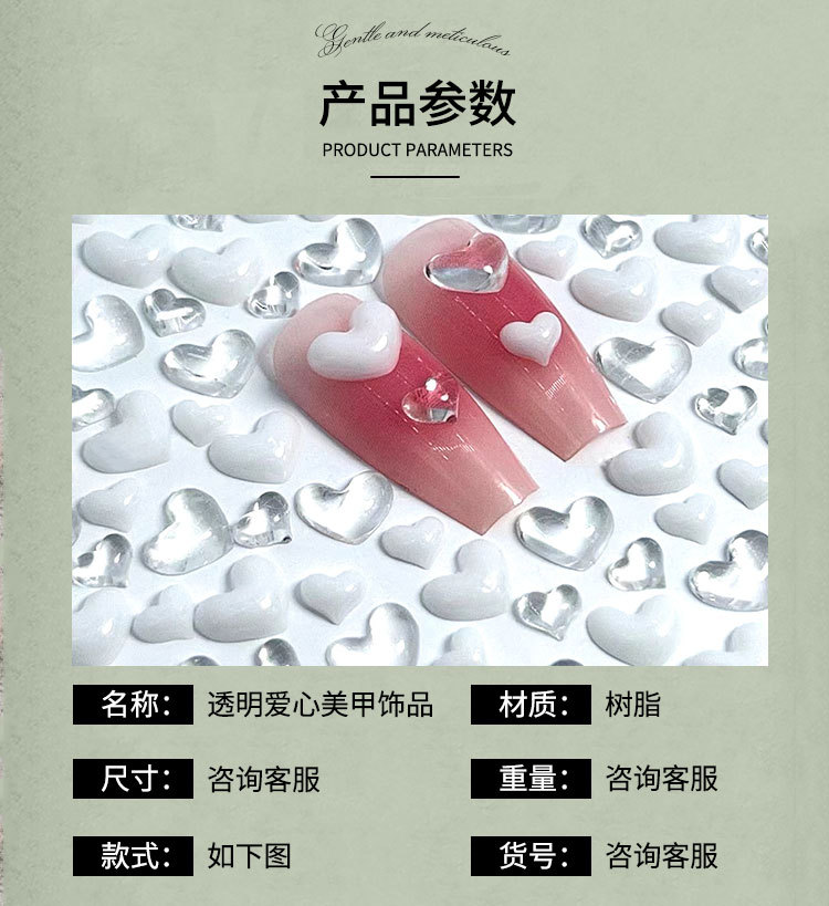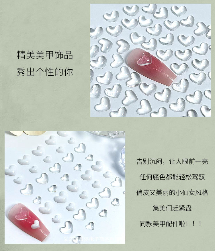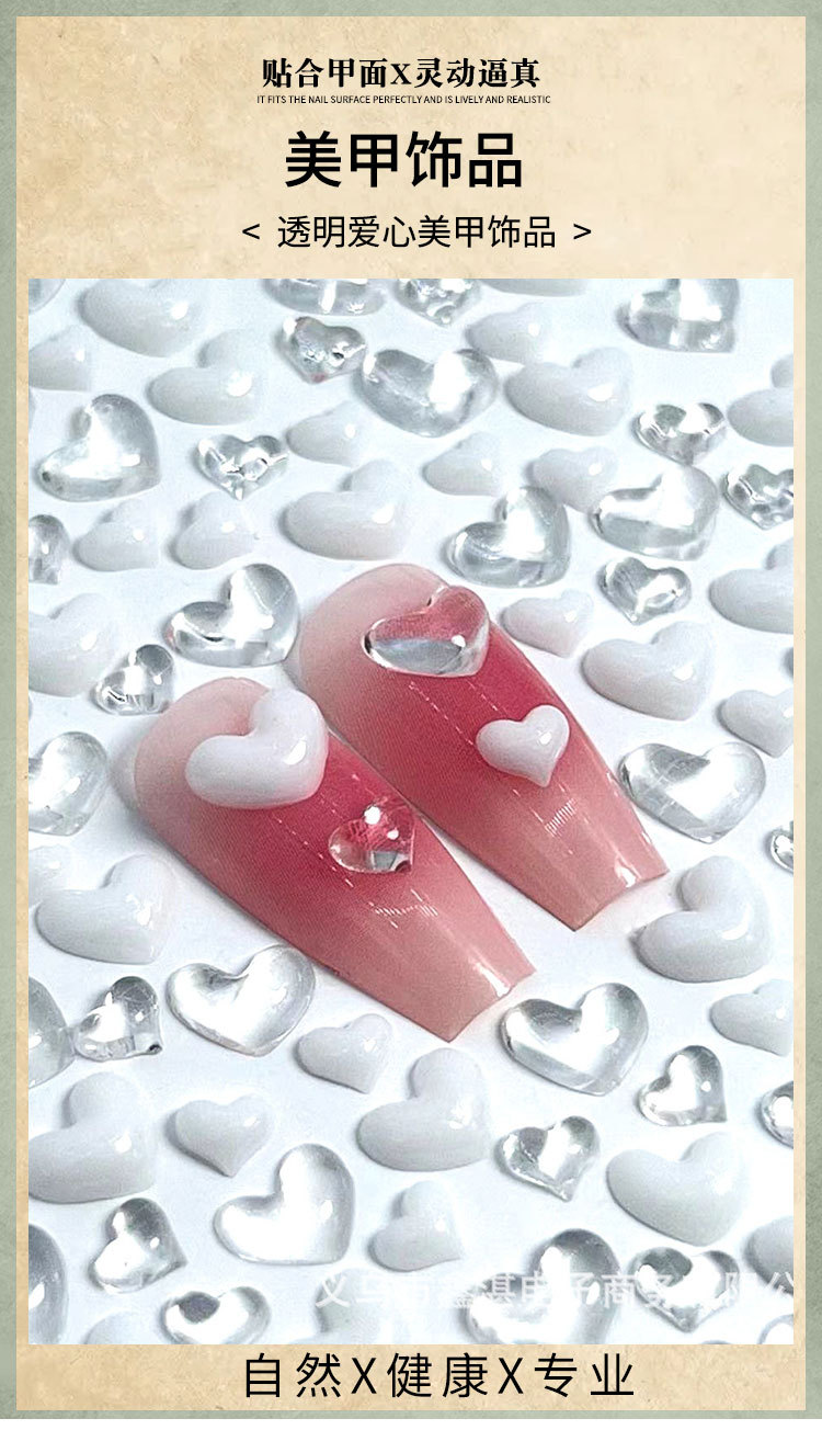 Взрывной прозрачный любовный маникюр мини-персик сердце маникюр маникюр оптовая продажа аксессуаров для ногтей в форме сердца