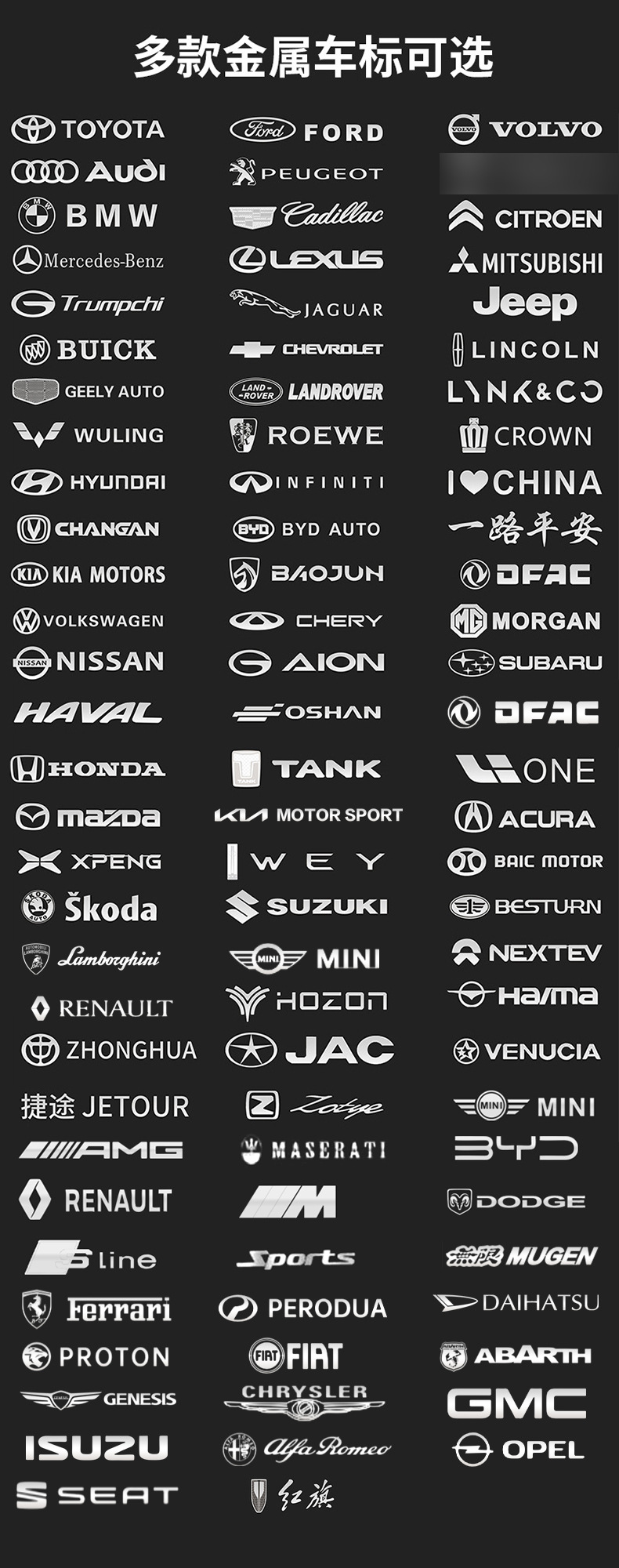 Audi; Баоцзюнь; BMW; Мерседес; Хонда; Peugeot; Buick; Чуан Ци; Фольксваген; Тойота; Форд; Эн.; Хавер; Замечания о моделях или консультациях со службой поддержки; Золотые цветные модели могут быть изготовены на заказ-свяжитесь со службой поддержки