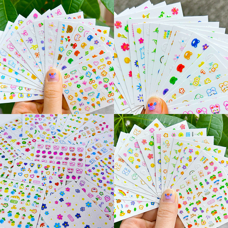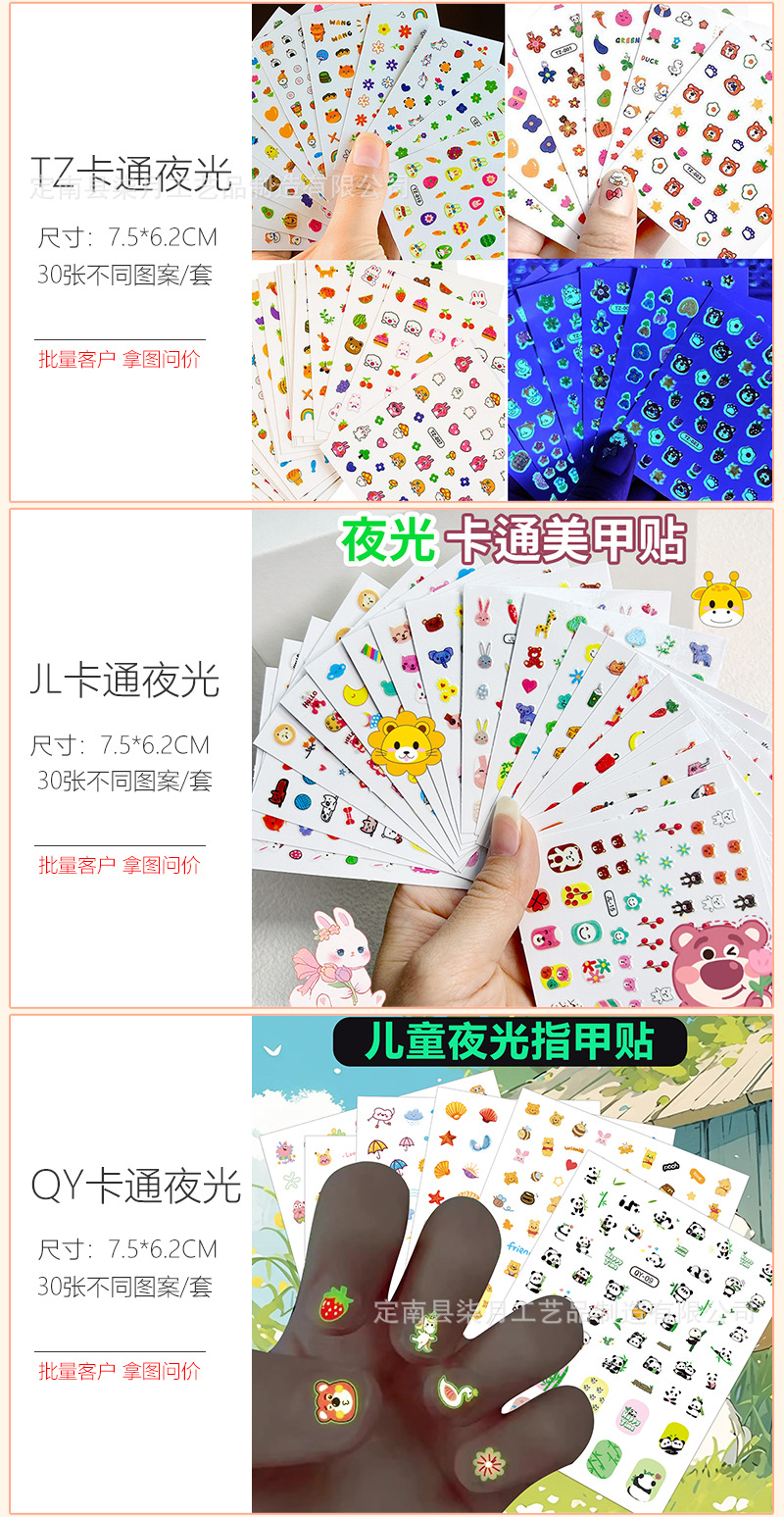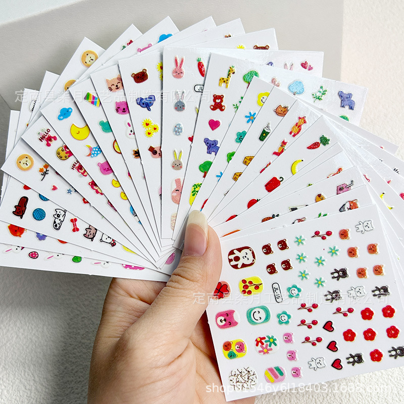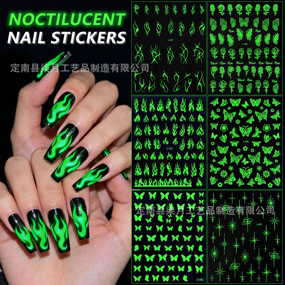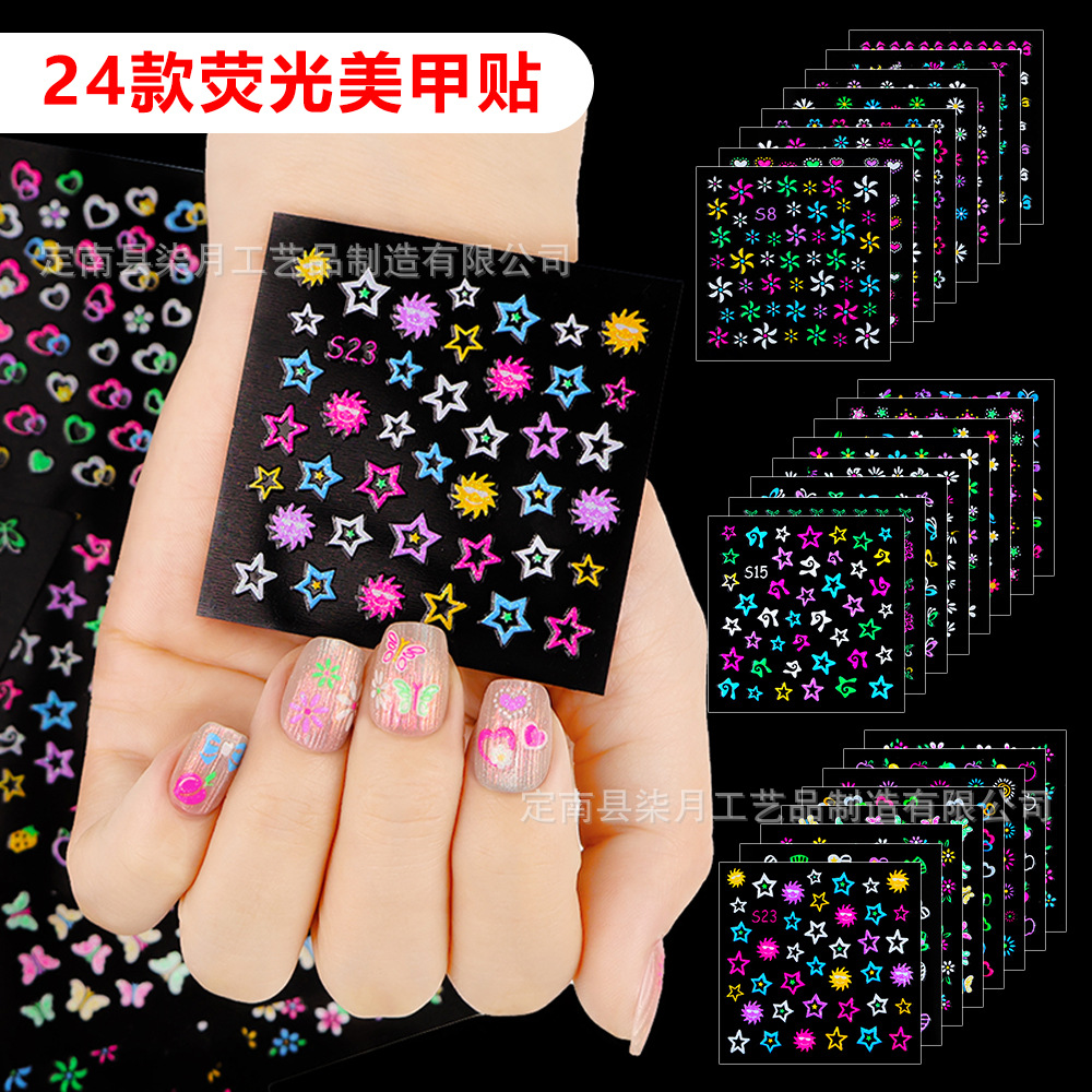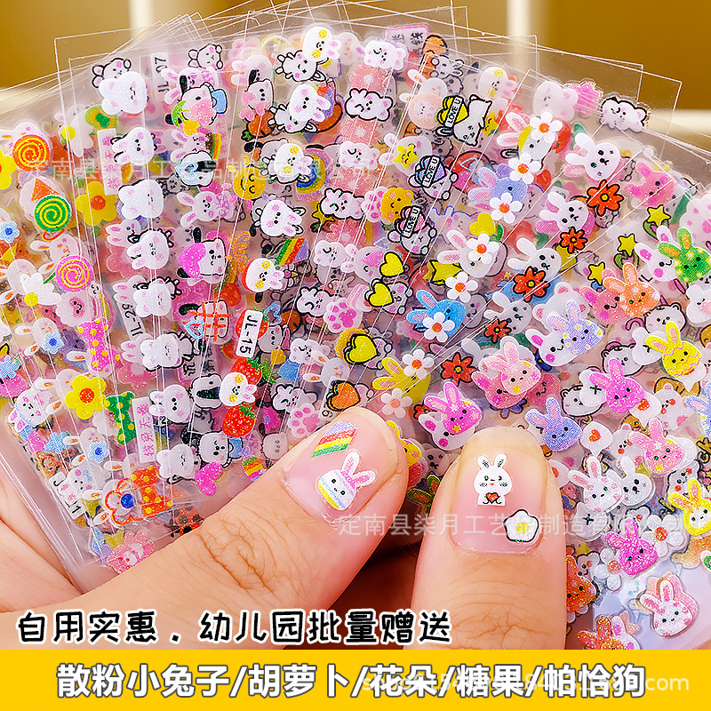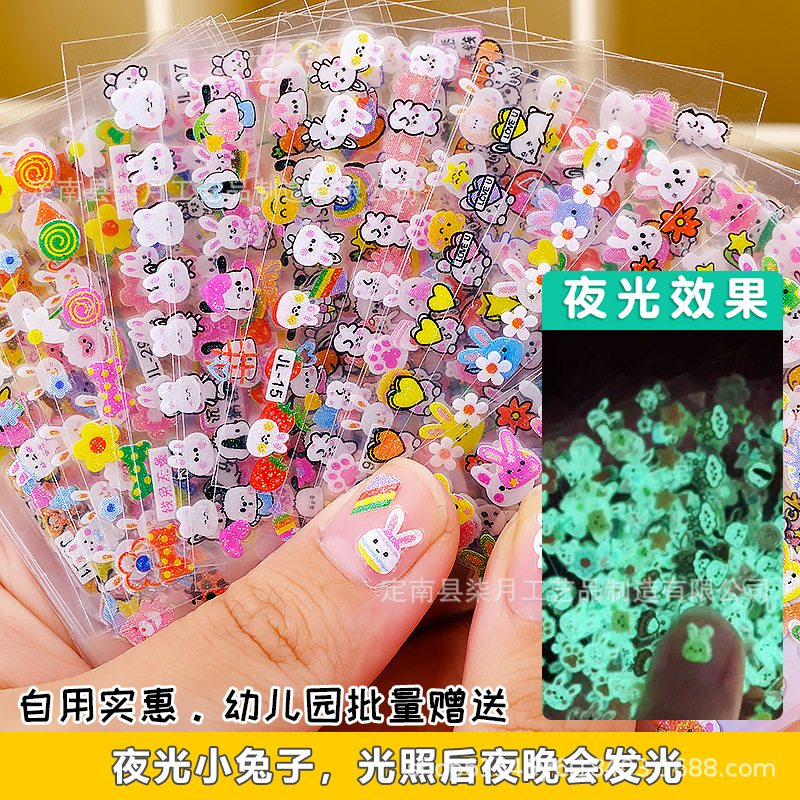 Светящиеся наклейки для ногтей с мультяшными зайчиками, цветами, 5D-эффектом, рельефными бабочками, звездами и лунами, оптом.