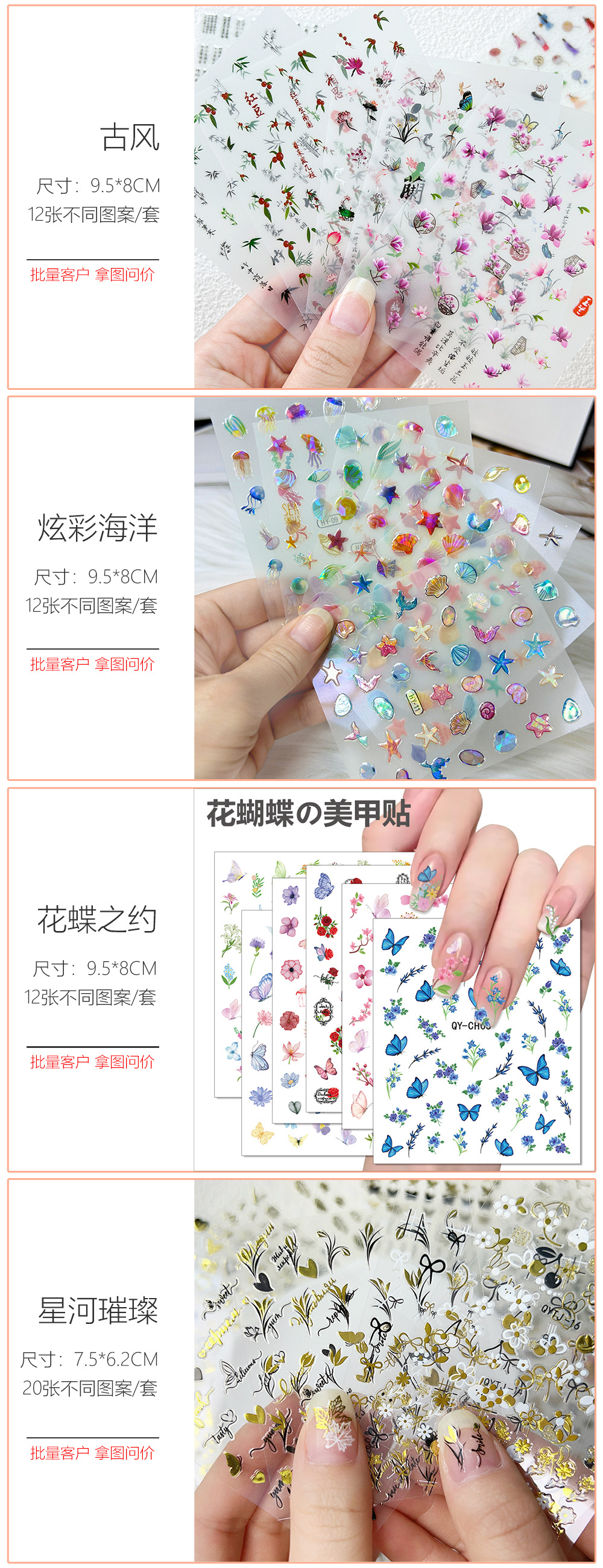 Новый год [15 фотографий] XN1-15; Граффити Сердце [Черный, 5 листов] Ten1-5; Красное золото любви [5 золотой пудры] Ten6-10; Луковый порошок мультфильм JT [20 фото]; Мультяшные разноцветные цветы H [30 изображений]; Маленький Кролик [30 фотографий ночного света]; Блестящий Зайчик [30 фотографий]; Маленькая желтая утка [30 фотографий]; 10 фиксированных разноцветных цветов; Блестящие цветы【30 фотографий】; Белые цветы【30 фотографий】; Черный цветок【30 фотографий】; Белый цветок, синий бриллиант [30 фотографий]; Розовые и белые цветы FS [30 фотографий]; Красочные кристаллические цветы [24 фото]; 24 типа флуоресцентных S [24 черных пленки]; Новый цветок XCH [30 фотографий]; Новый белый цветок XBH [30 фотографий]; Допаминовый мультфильм [30 фотографий]; Синие и серебряные ракушки [30 фотографий]; Золотые ракушки [30 фотографий]; Снежинки【30 фотографий】; Золотые годы [30 фотографий]; Лазерная бабочка Red TJ [30 фото]; Бронзовая бабочка FAM [30 фото]; Лазерная бабочка Blue TJ [30 фото]; Золотые кружевные цветы с бриллиантами [30 фото]; 30 видов имитации бриллиантов [30 фотографий]; Цветные искусственные бриллианты [30 фото]; Пасха【30 фотографий】; День святого Валентина QRJ [30 фотографий]; Ночник JL Cartoon [20 фотографий]; TZ мультяшный светящийся [20 фотографий]; Ярко-красные губы【6 фотографий】; Мрамор [6 фото] L858-863; Мрамор [3 изображения] TH1443-4-6; Светящийся звездный взрыв [6 фотографий]; Горячее серебро Starburst【6 фотографий】; Пламенная бабочка [Светящиеся в темноте 6 листов] L834-839; QYYG светящийся [6 фотографий]; Светящаяся снежинка L [6 фотографий]; Маленькие ароматные цветы [золото, 6 штук] L828-833; Маленький ароматный бант [золото, 6 штук] L840-845; Красная вишня [6 фото] L846-851; Золотой порошок французский QYFS [6 фото]; Градиентный французский [12 фотографий]; Новый бронзовый цветной драгоценный камень L [16 фото]; Лазерная имитация бриллиантов [16 фото]; L-727 бант, 4 цвета, по 1 штуке каждого [4 фотографии]; L-728 лук, 4 цвета, по 1 штуке каждого [4 фотографии]; L-729 лук, 4 цвета, по 1 штуке каждого [4 фотографии]; Ледяная бабочка L721-726 [6 листов]; Ледяная Синяя Бабочка L721-726 [6 фотографий]; Красочный океан【12 фотографий】; Блестящие детские рождественские SD [16 фотографий]; Светящиеся в темноте рождественские SD-карты для детей [16 шт.]; 10 видов снежинок [10 фотографий]; 10 видов снежинок [10 фотографий светящихся]