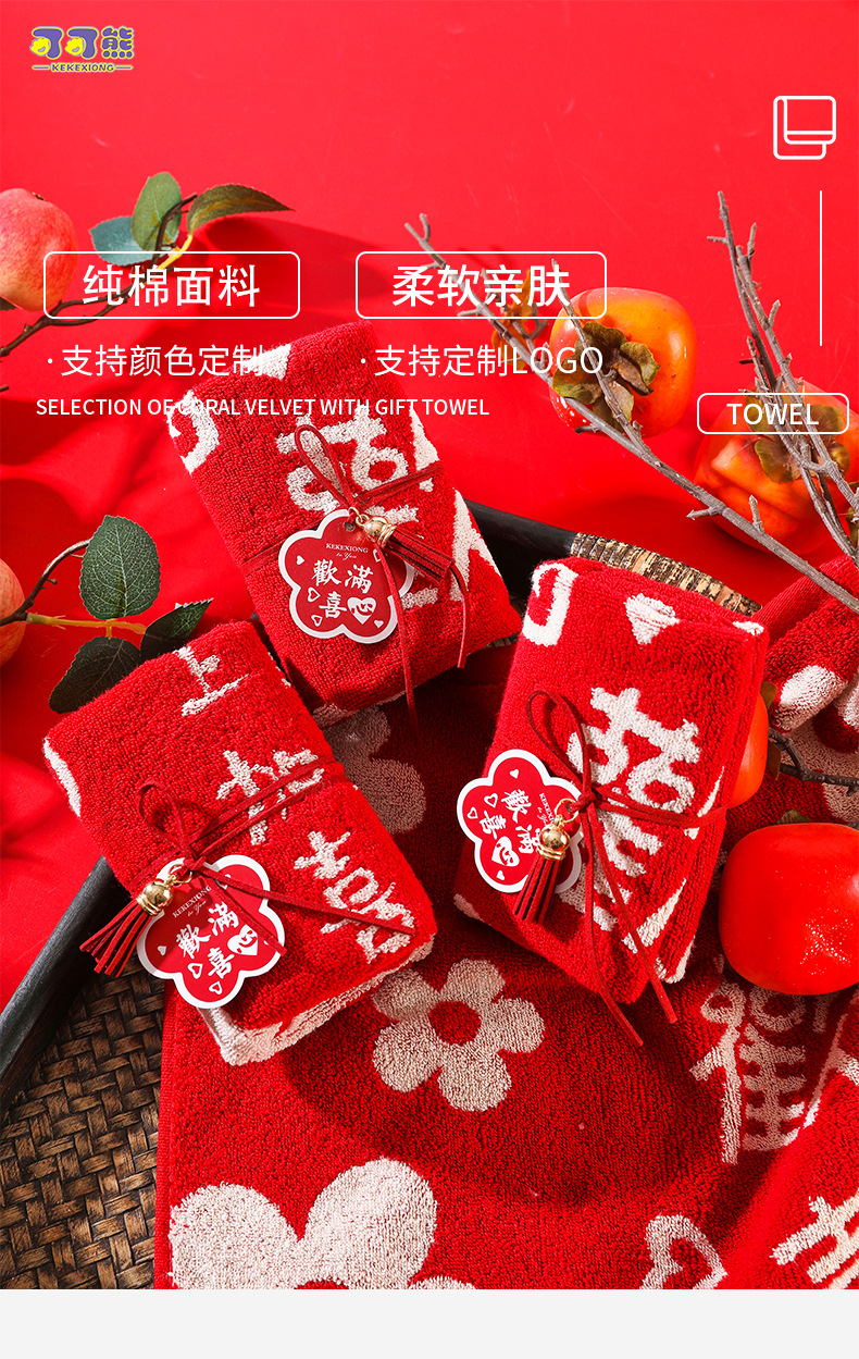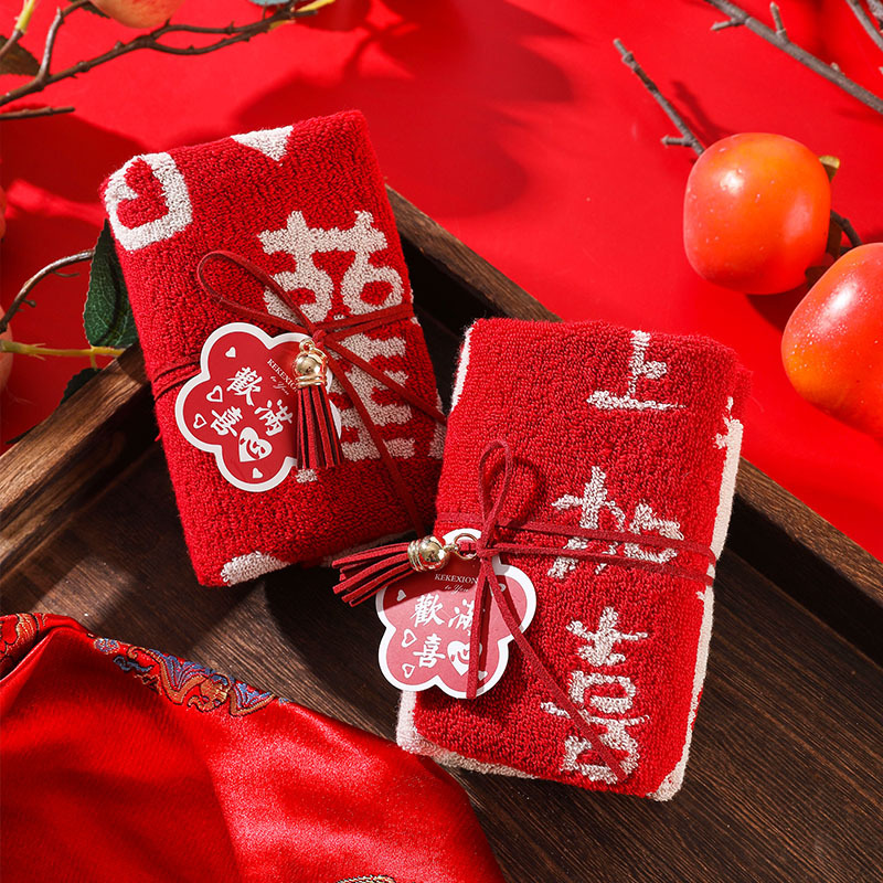 Счастливое полотенце из чистого хлопка, свадебный магазин конфет, сувенир, свадебное благоприятное полотенце, подарок для возврата ребенка, полнолуние, новоселье, день рождения