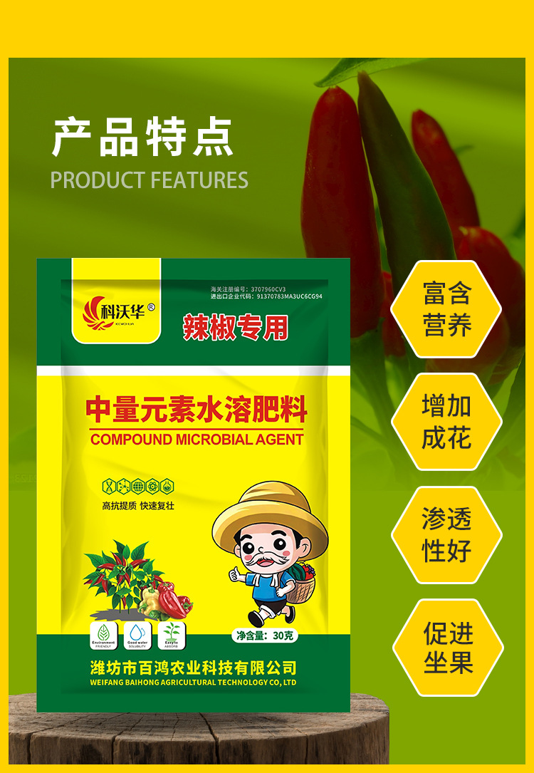 Специальное комплексное удобрение Kewohua со среднезернистыми элементами для перца, огурцов и бобовых культур.