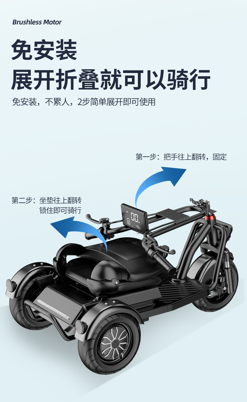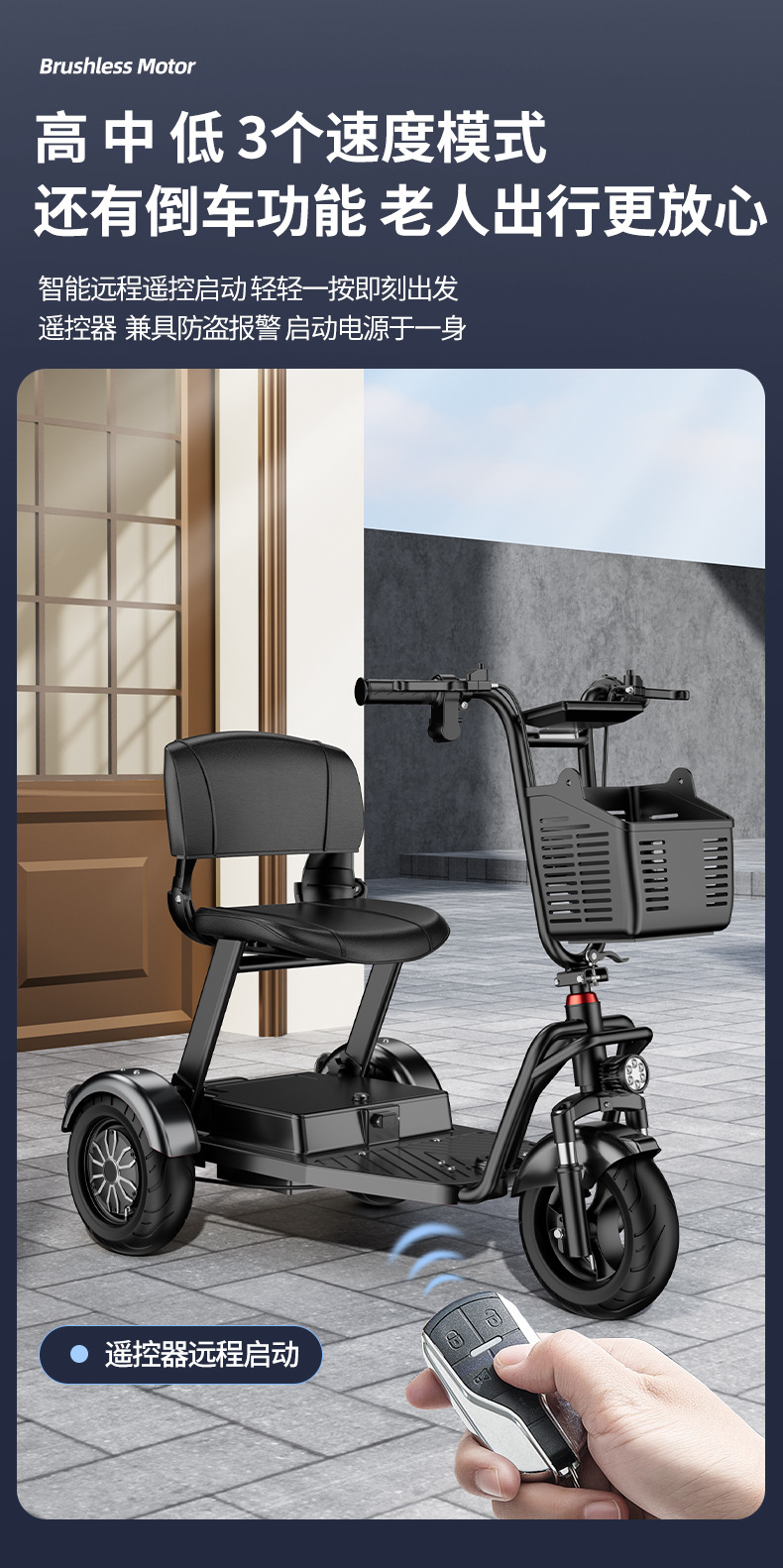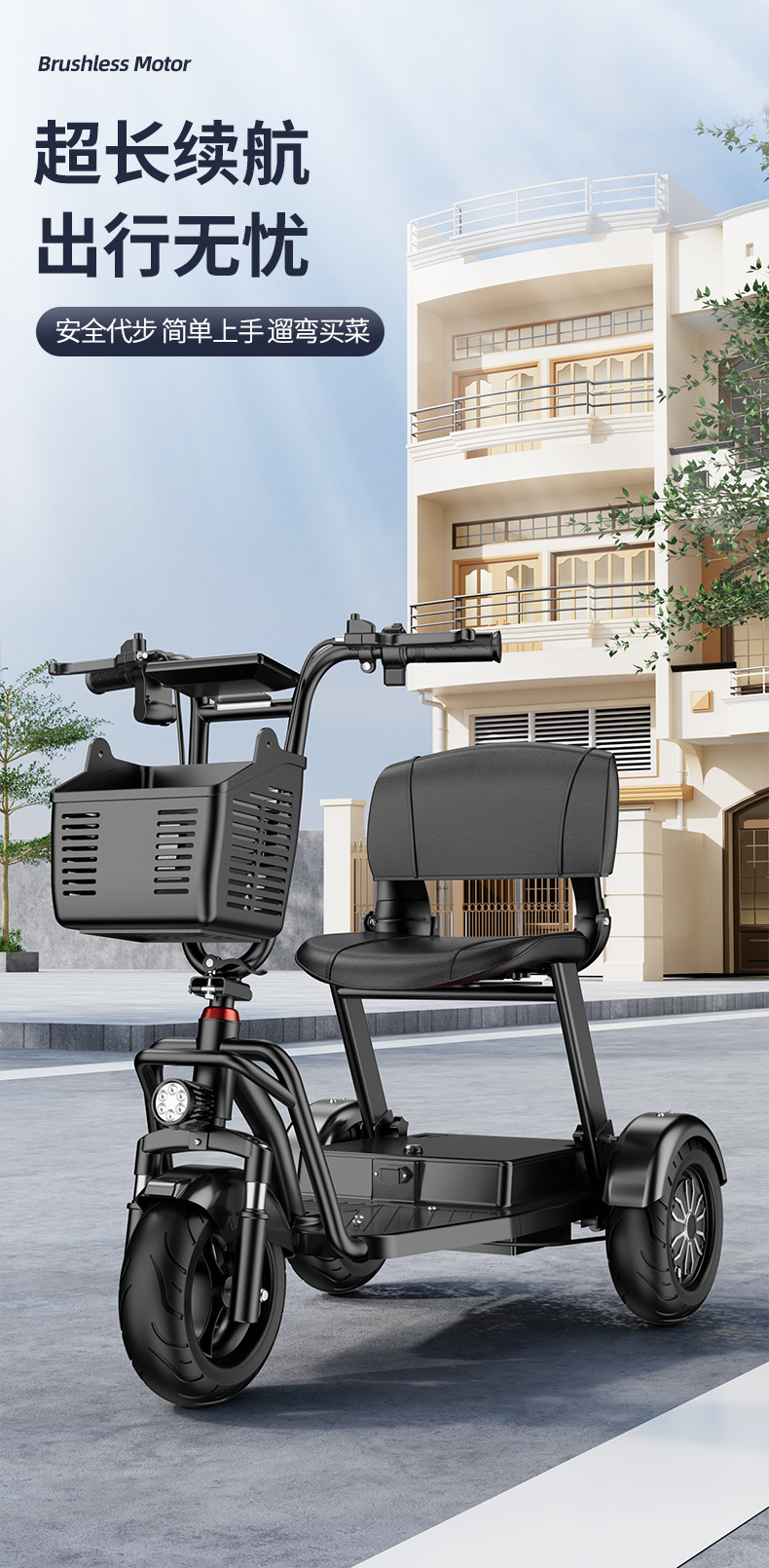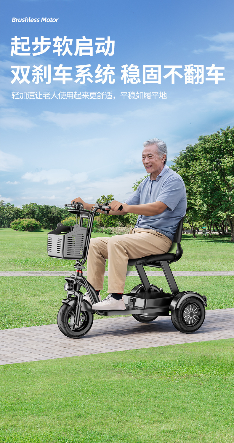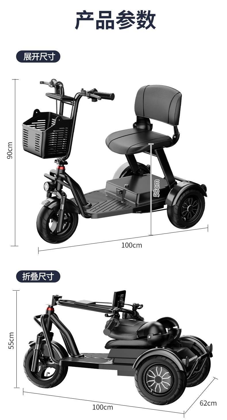 Самокат для пожилых людей, электрический трехколесный аккумулятор, автомобиль можно носить с перезаряжаемой литиевой батареей, складной портативный электрический велосипед для взрослых