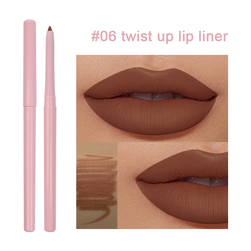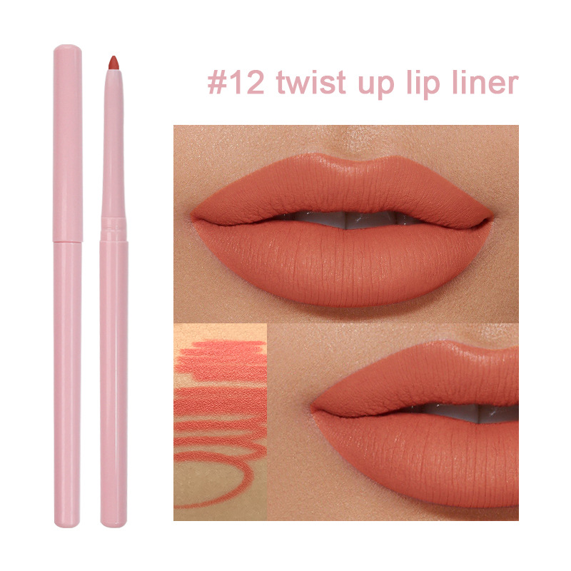 外贸专供15色无logo不沾杯防水旋扭唇线笔 Retractable lip liner