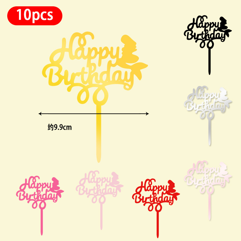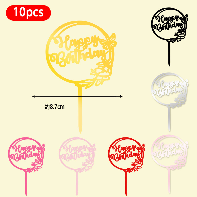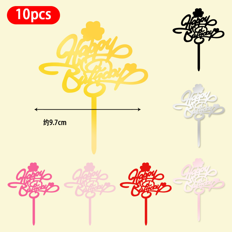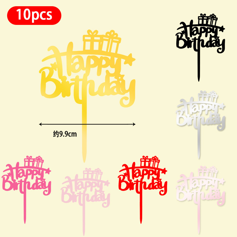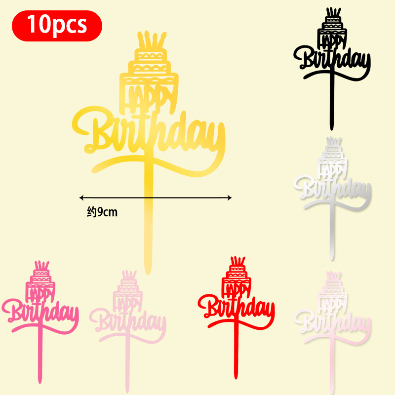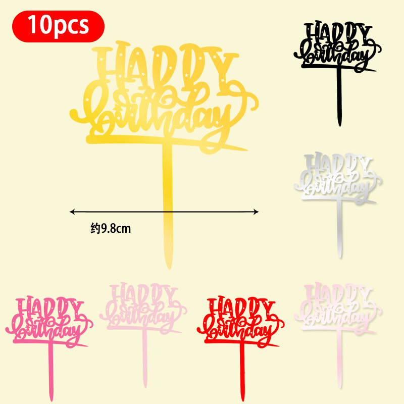 Оптовая продажа, 10 упаковок акриловых вставок для торта, английские вставки для выпечки торта с днем рождения, популярные декоративные вставки