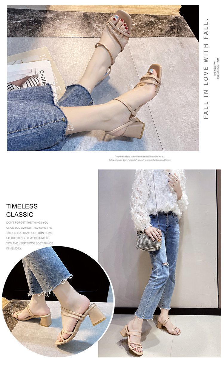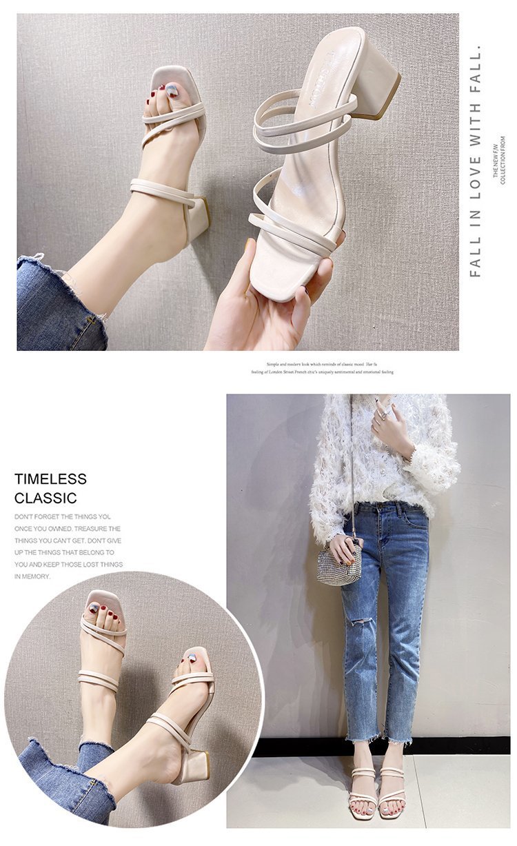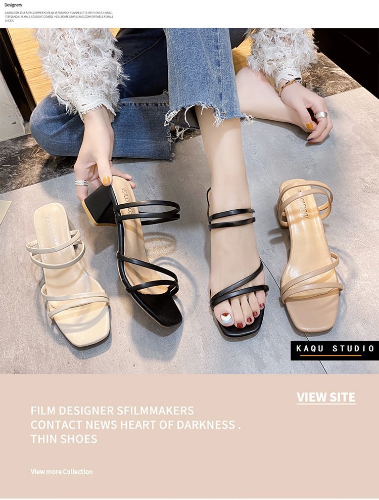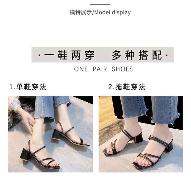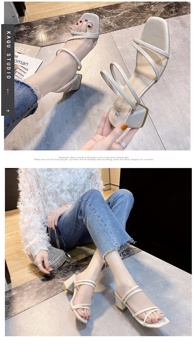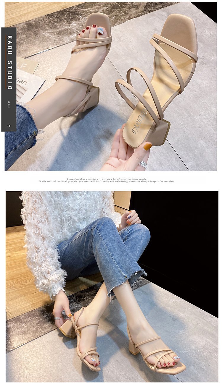 Черные сандалии с тонкими полосами женский фея ветер 2020 новые сандалии на каблуках женские туфли на толстых каблуках