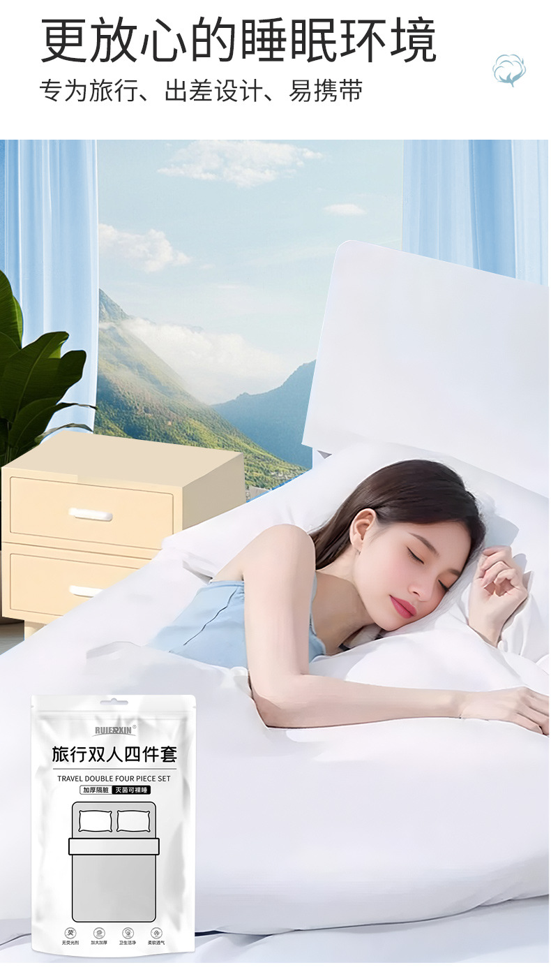 Одноразовые постельные принадлежности для путешествий двойной набор из четырех частей с принтом простыни одеяло наволочки отель портативное постельное белье для деловых поездок