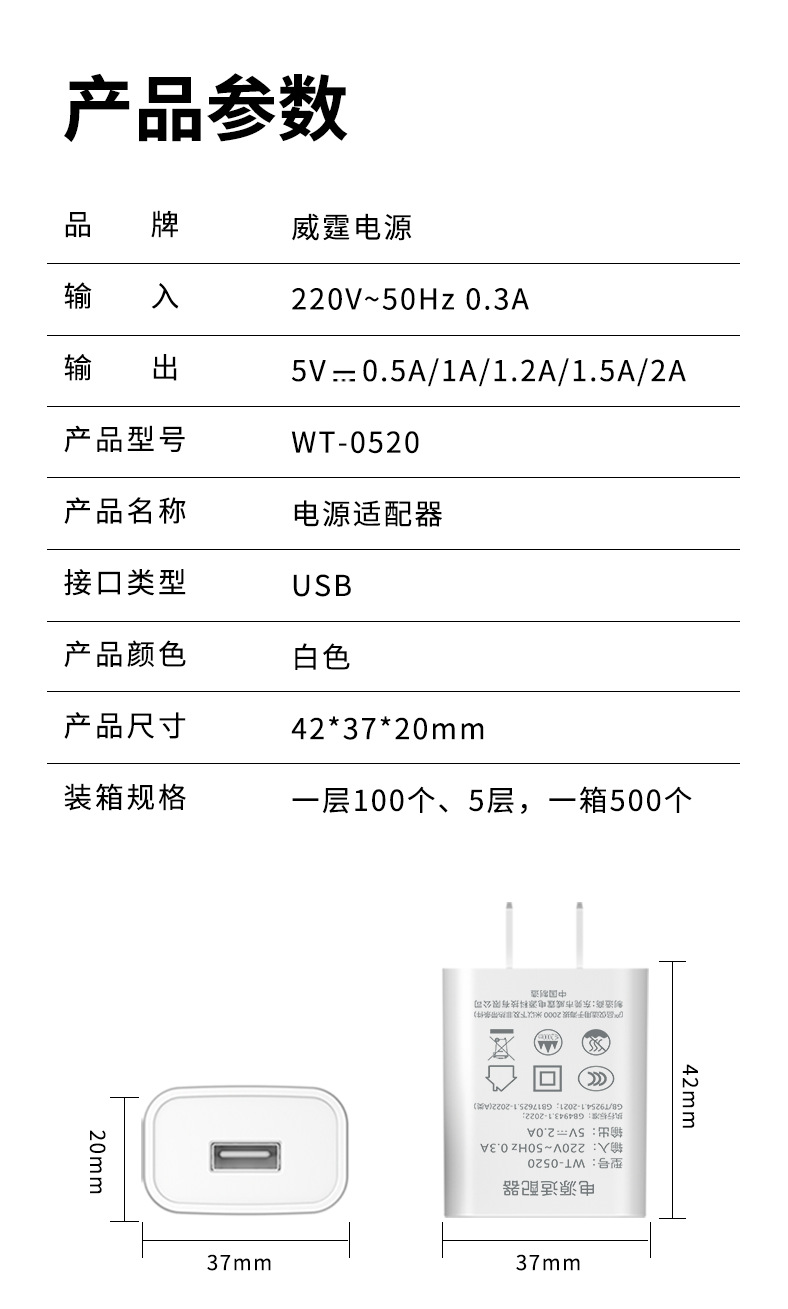 5v2a充电器3C认证中规电源头 适用苹果手机充电器多功能usb口手机充电头5v2安充电头20W快充