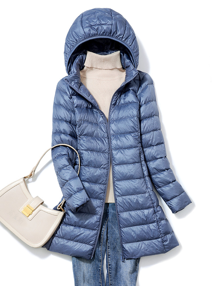 Трансграничная осень и зима 2024 Тонкий пуховик женский средний и длинный тонкий пуховик плюс толстая шапка для снятия