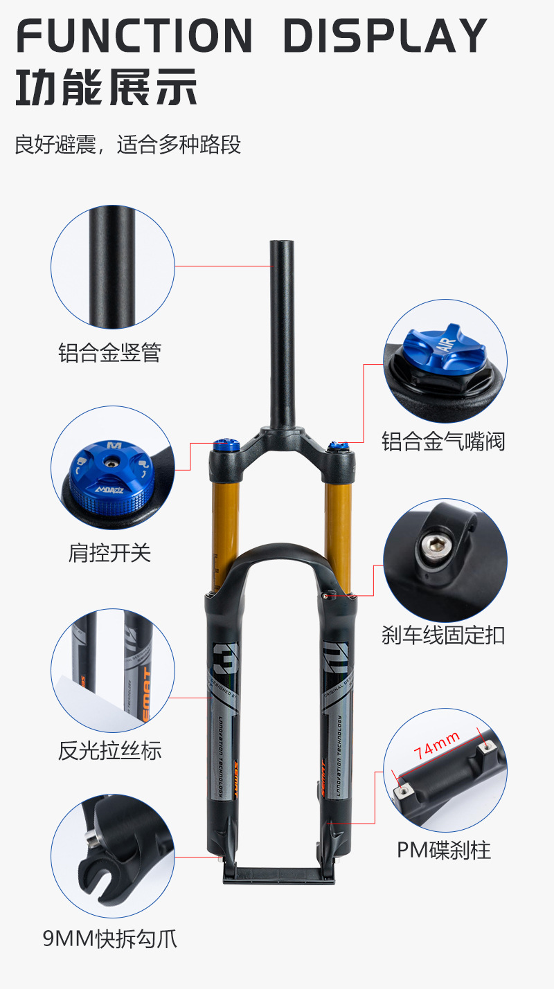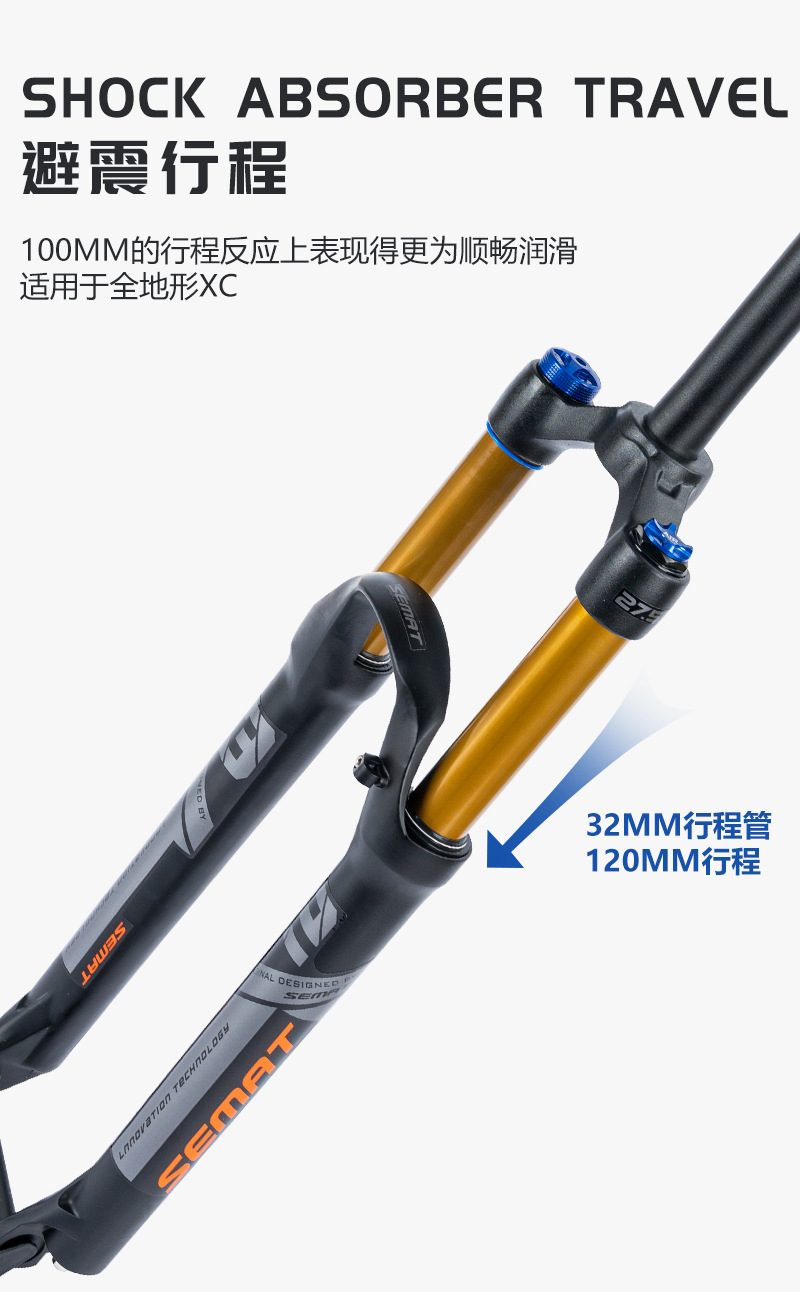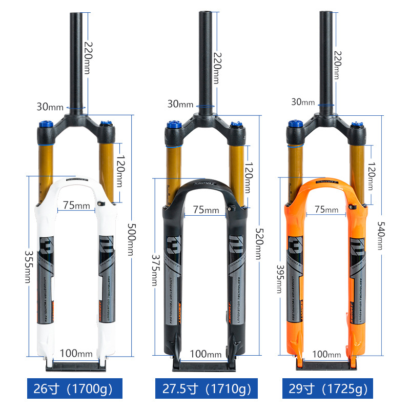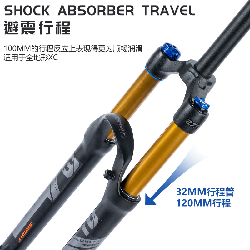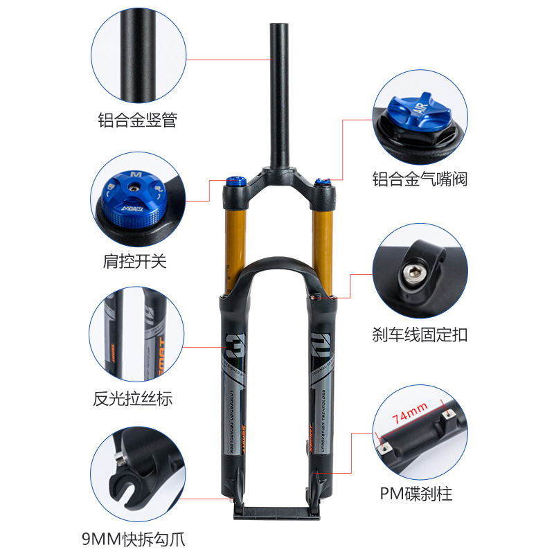 Передняя вилка для горного велосипеда, амортизирующая газовая вилка 26, 27,5, 29inch амортизирующая передняя вилка из алюминиевого сплава с управлением через плечо, блокирующая давление воздуха