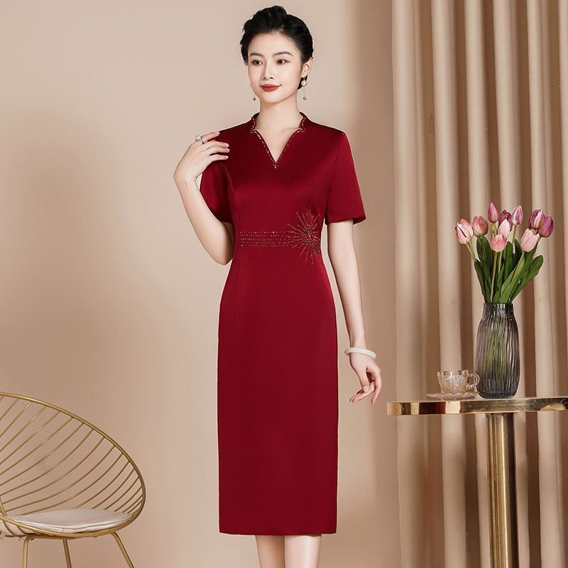 2024 весна и лето новая мама среднего возраста средний и длинный чонсам