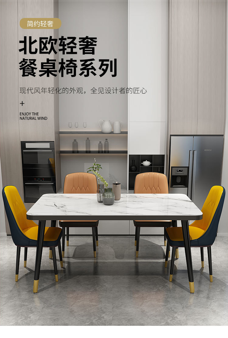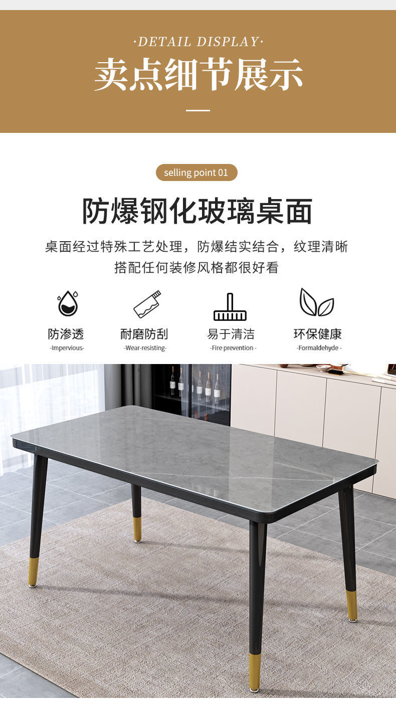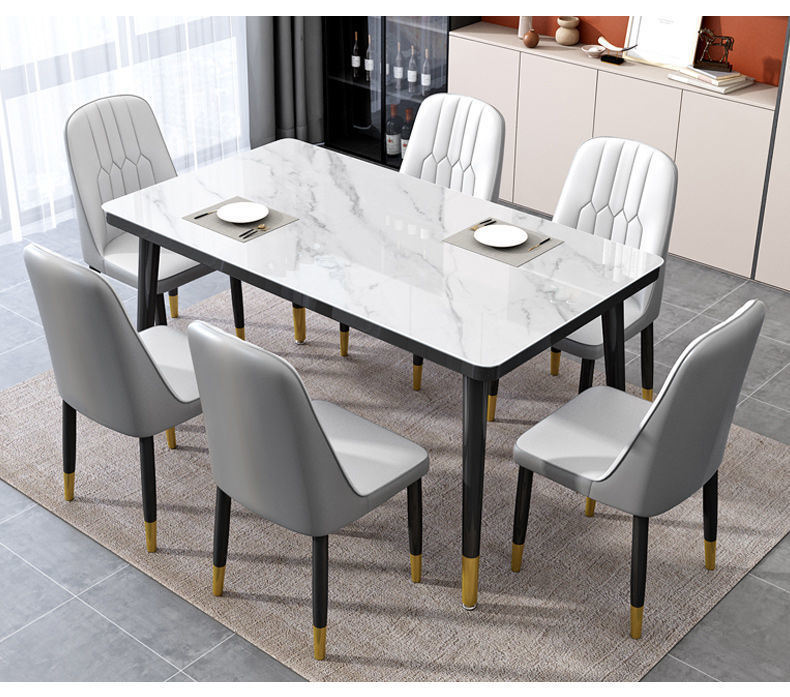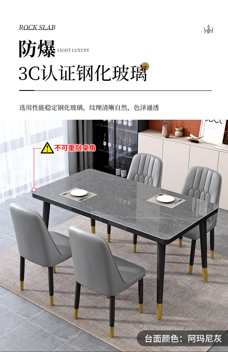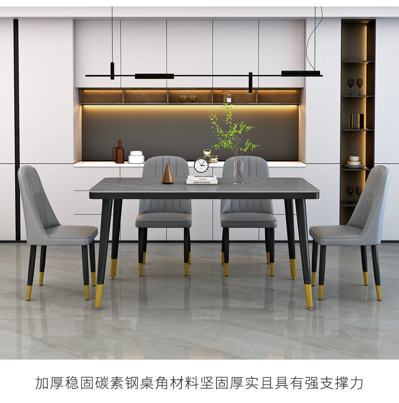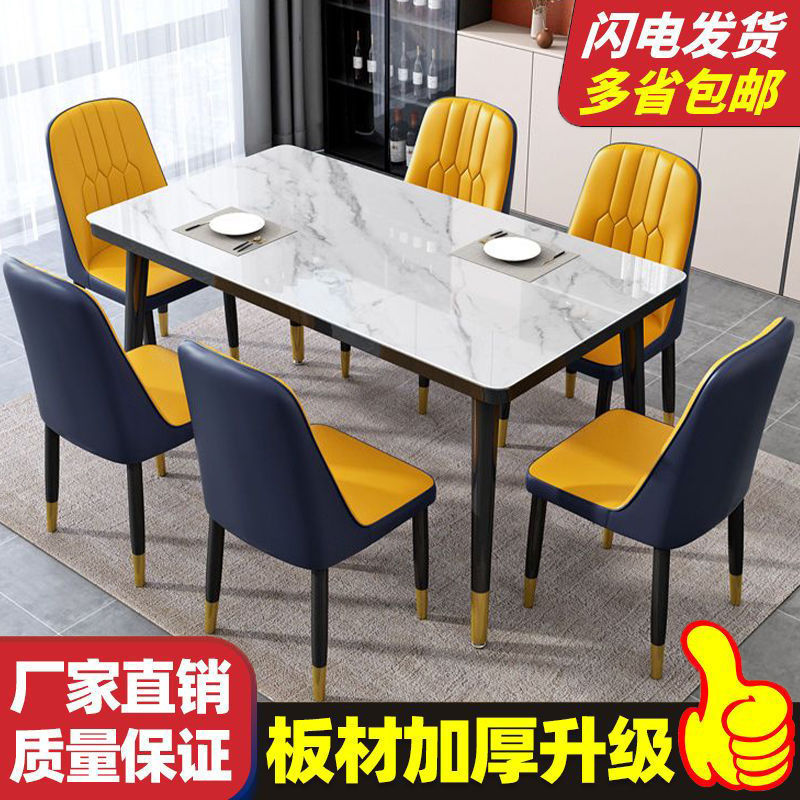 Легкий роскошный стеклянный обеденный стол, простой обеденный стол для дома, стиль, маленькая квартира, имитация сланца, обеденный стол и комбинация стульев, оптовая продажа с фабрики