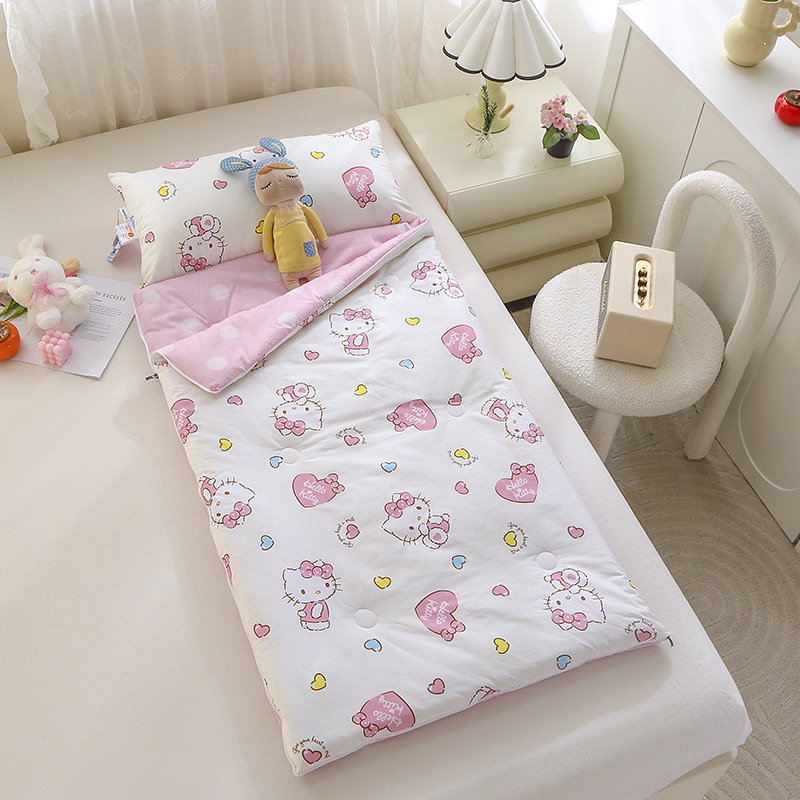 Осенне-зимний детский спальный мешок Sanrio из хлопка с мультяшным принтом, защита от раздражения, чистый хлопок, всесезонный, для малышей, машинная стирка, теплый