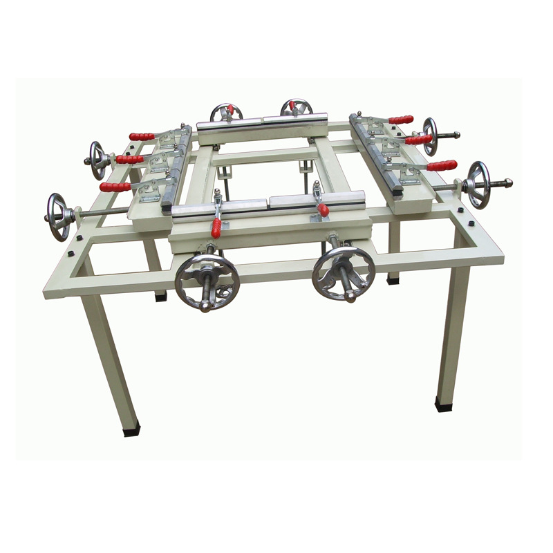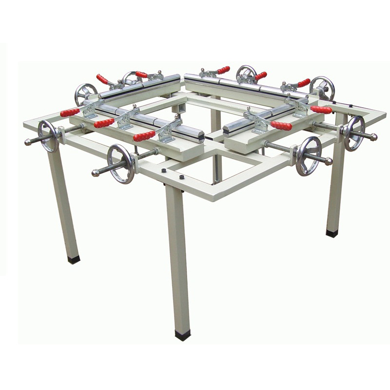 上四边的手轮,使网纱慢慢处于张紧状态,如此反复,直到网纱的各处的张力大致相等为止,张力的大小概括网纱的目数和质地而定,网张好后最好用张力计进行最终的检查,注意:网纱拉力不能一次拉到位,必须分开几次,比如:拉网力要求40N,先拉到15N,经过最少5分钟的停留后,才拉到20N如此反复拉网才可。