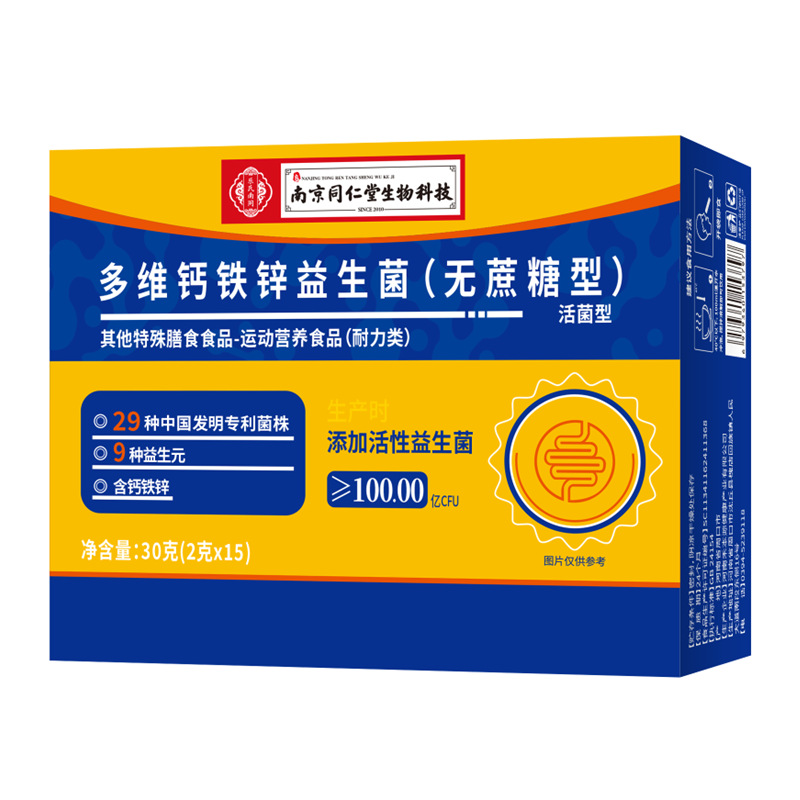 Мультивитаминный комплекс Nanjing Tongrentang с кальцием, железом, цинком и пробиотиками, без сахара, 2 г * 15 пакетиков, с добавленными активными пробиотиками