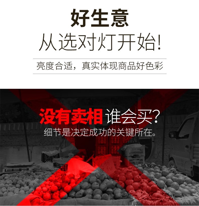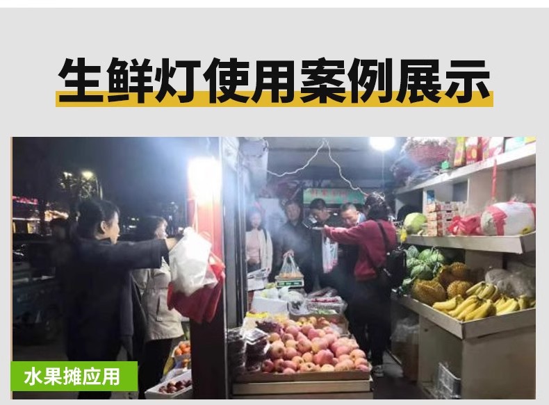 可以满足客户对不同水果表面增添色彩。不像市场上那些便宜的普通水果灯那样,要么蓝色,要么红色。调节很不灵敏。对于某种水果来说,要么不够红,要么红过头了,这样的水果会让顾客看起来很假!!
